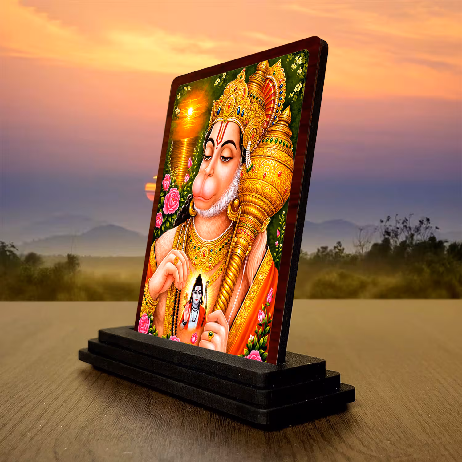 - HD printed artwork gives this Hanuman design a sharp finish with bright tones and a vibrant devotion visual appeal. It carries a gift-friendly presentation.