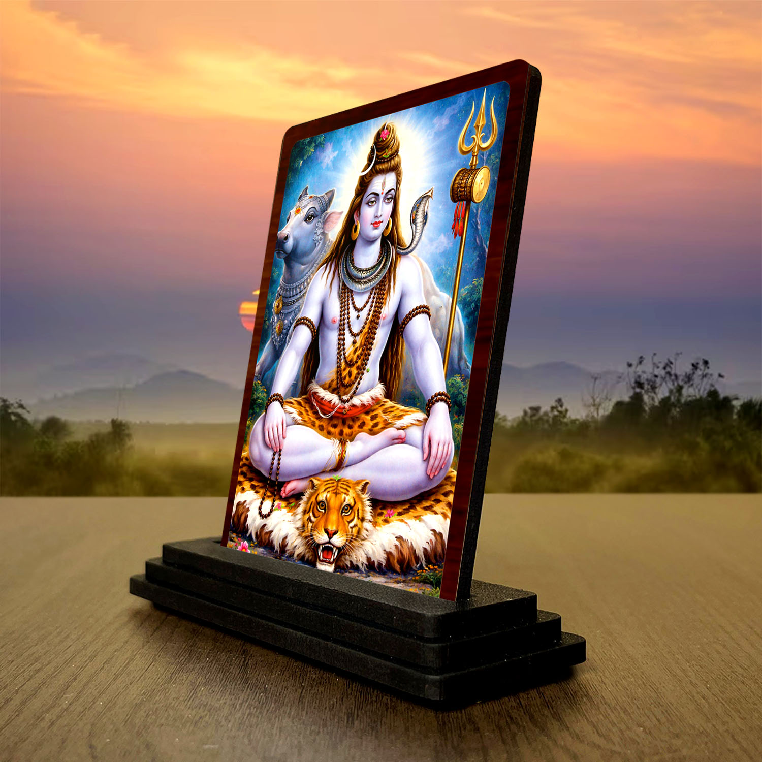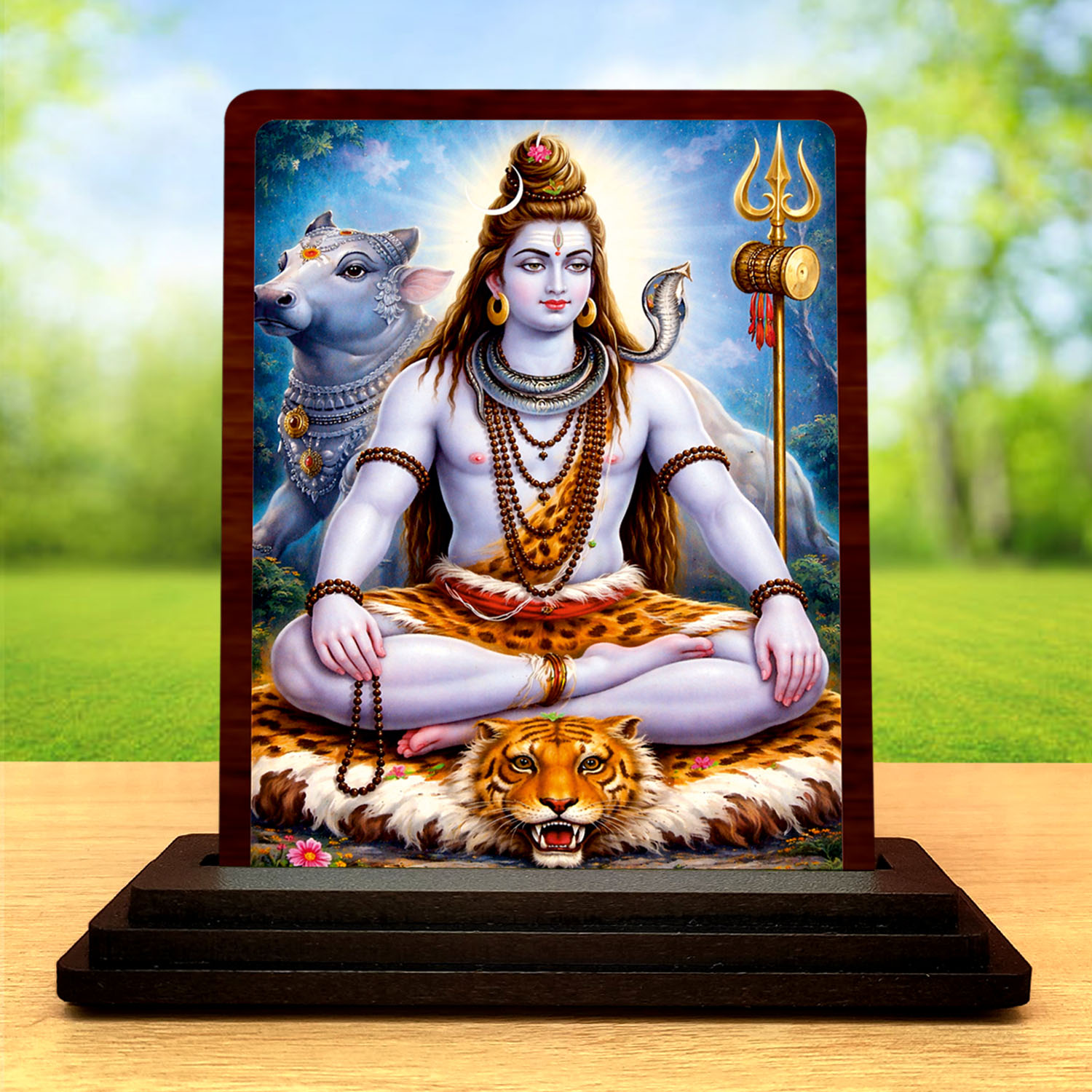 Home » Shop » 3×4 Inch Lord Shiva Wooden Idol with HD Print | Calm Energy Desk & Temple Decor