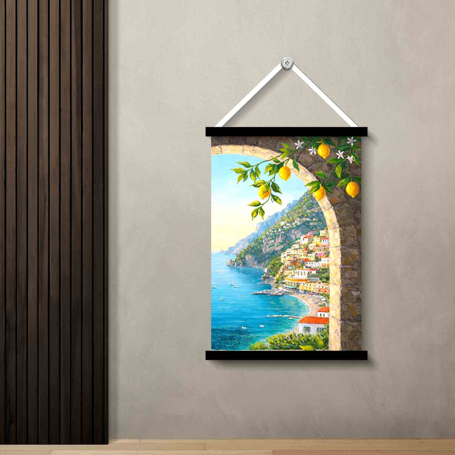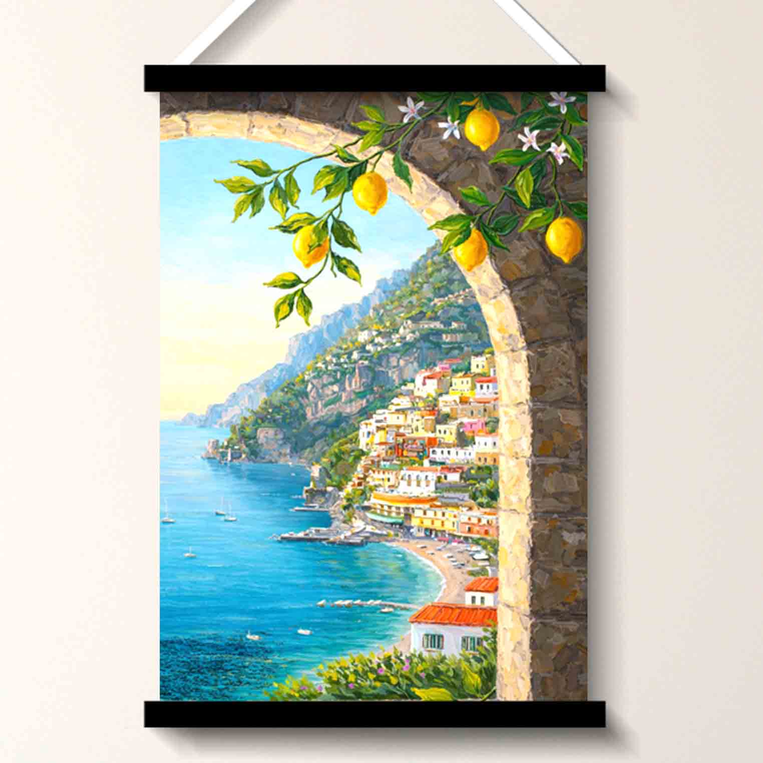 Amalfi Coast Arch View Wall Art Painting is a decorative wall art piece designed to bring color, mood, and visual depth to your space. This design features an arched coastal viewpoint with lemons and sea-cliff scenery, making it suitable for homes, bedrooms, living rooms, offices, caf?s, hallways, entryways, and gifting. Artwork-led wall d?cor helps instantly uplift an empty wall and adds personality without major interior changes.