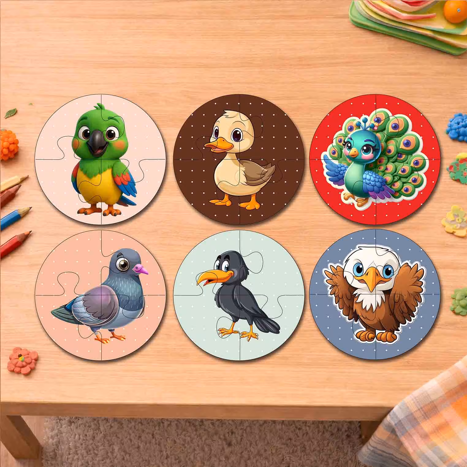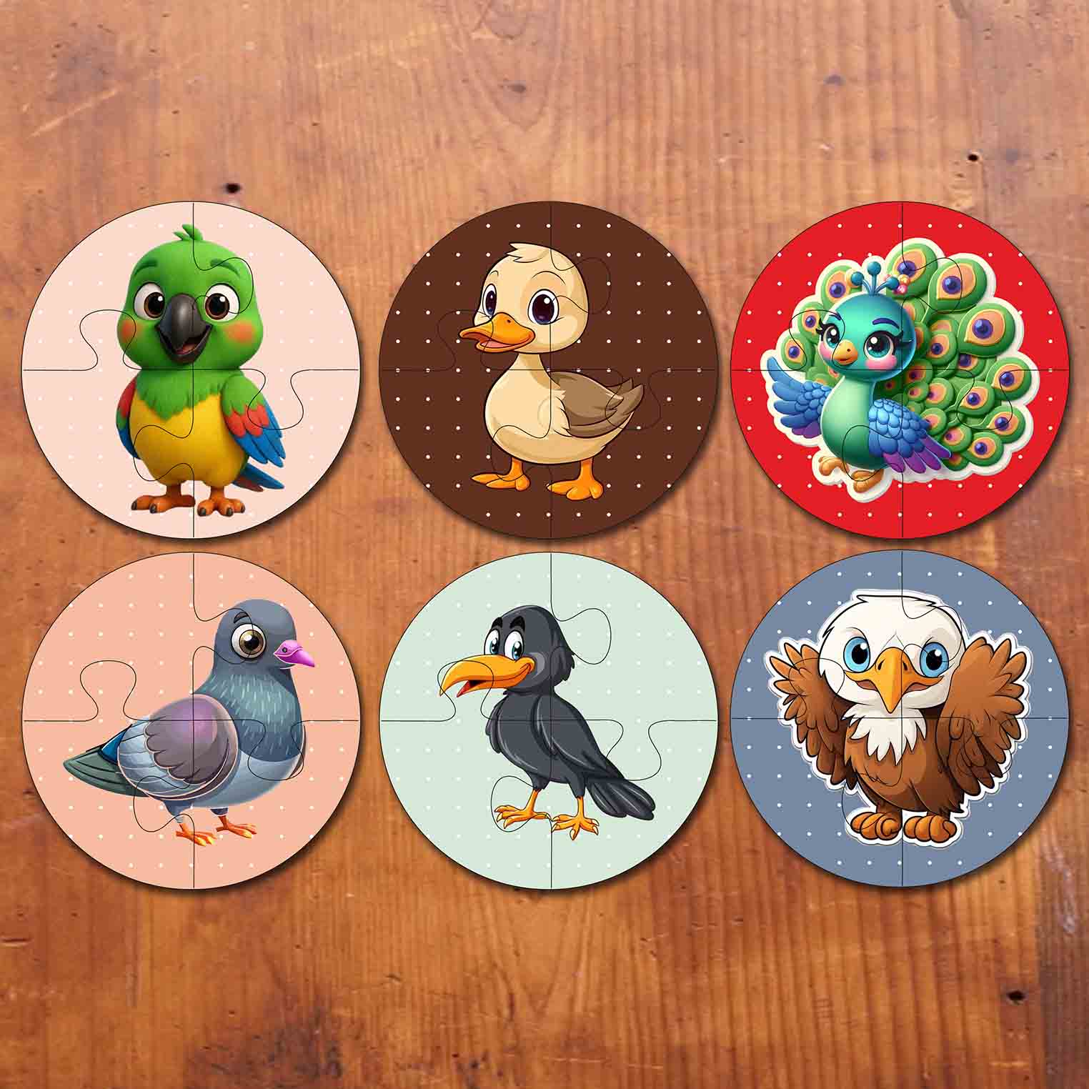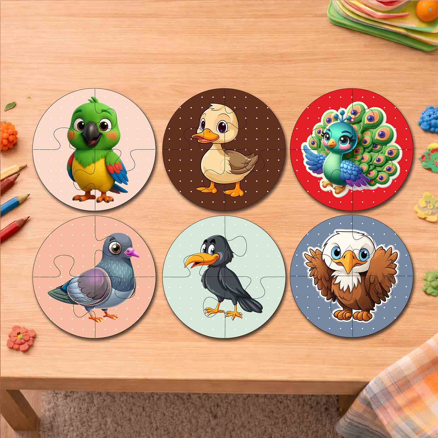 Bird Round Jigsaw Puzzle Set for Kids is a themed kids puzzle set designed to combine fun play with early learning. This set includes a combo of round bird puzzles featuring parrot, duck, peacock, pigeon, crow and eagle, making it useful for visual recognition, shape matching, theme-based learning, and screen-free activity time. Colorful puzzle sets like this help children stay engaged while exploring familiar objects, names, shapes, and matching pieces through play.