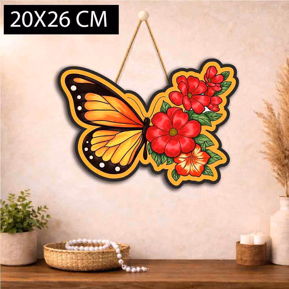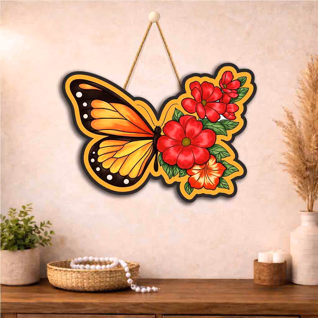 Butterfly Bloom Wooden Wall Hanging is a premium butterfly floral wall decor created for people who want their walls to feel lively, expressive and memorable. This design brings together nature-inspired beauty with yellow, orange, pink and floral accents, making it a strong choice for homes that need a decorative focal point without looking heavy or cluttered. If you enjoy tasteful d?cor that feels artistic yet easy to style, this wall hanging can instantly uplift a plain wall and give the room a refined identity. The compact 20 x 26 x 0.5 cm size makes it practical for daily home styling while still giving enough visual presence to draw attention.