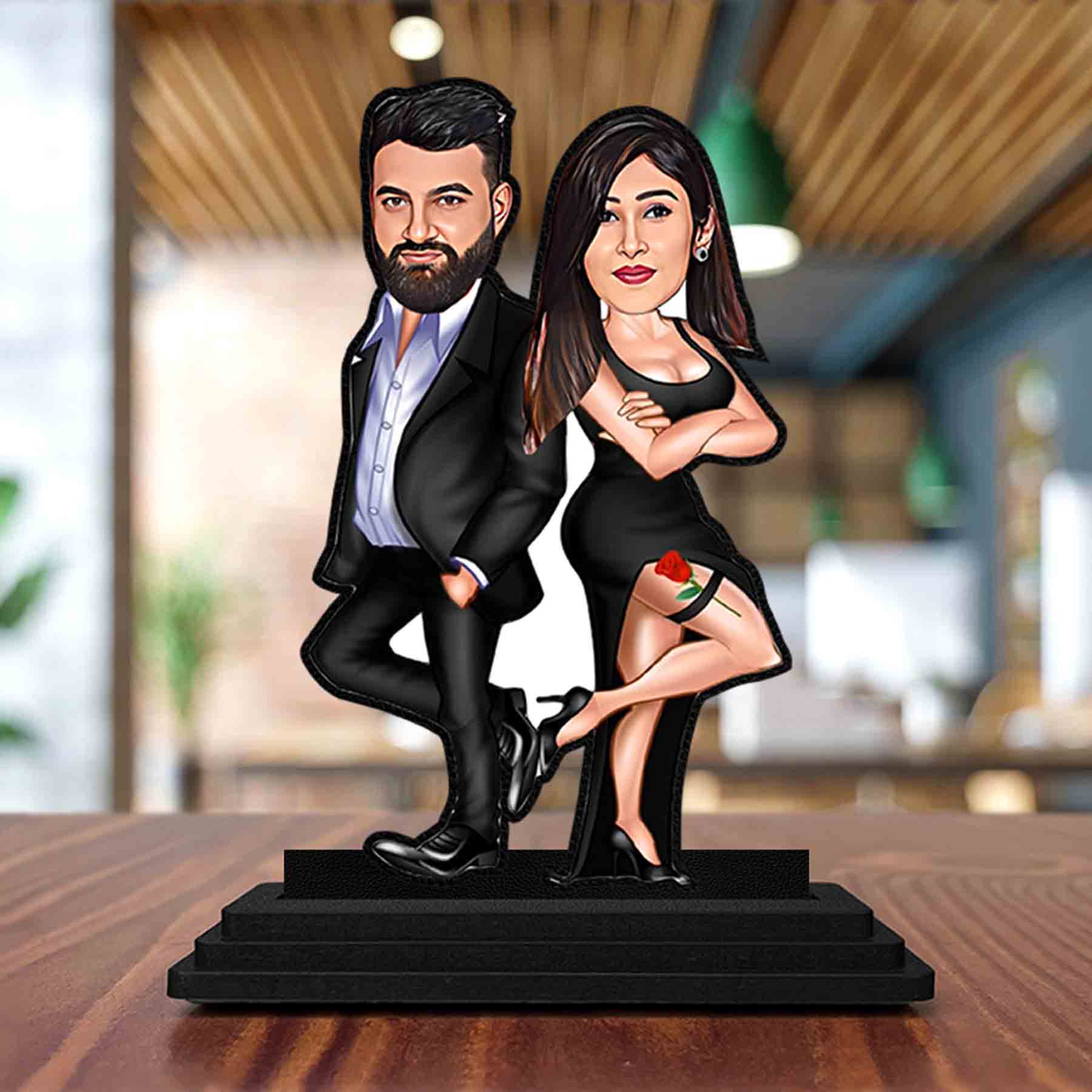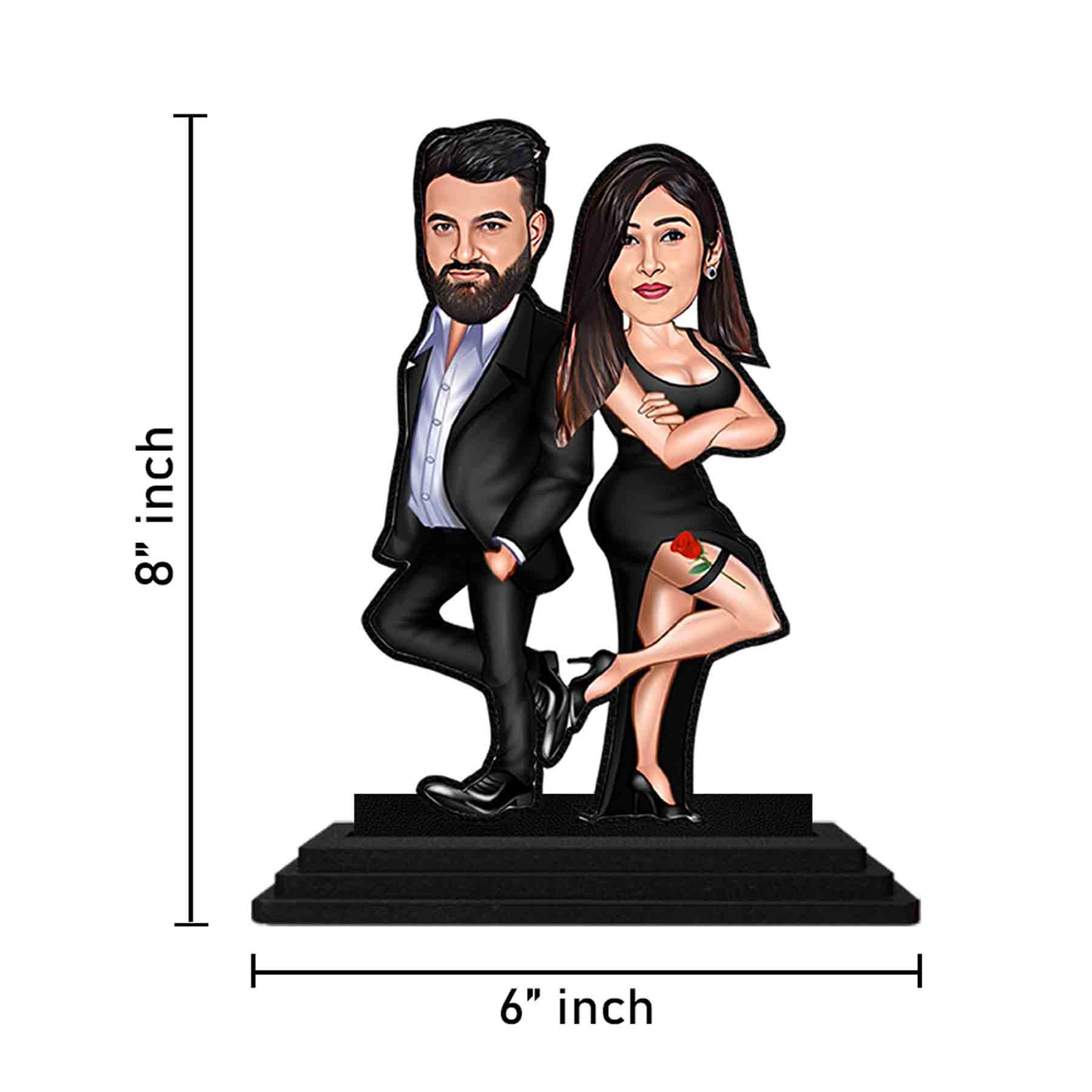 Caricature For Couples Discover the allure of our exquisite Personalized Couple Caricature Statue Figure for weddings (Size : 6×8 inches), where craftsmanship meets creativity in perfect harmony. Handcrafted from meticulously selected, sustainable hardwood, each statue is a testament to enduring quality and timeless beauty. These statues command attention with their captivating presence. Adorned with a glossy, high-lacquer finish, they exude a radiant vibrancy that accentuates the natural elegance of the wood grain, creating a truly mesmerizing visual spectacle. An ideal gift for any occasion, our wooden statues offer a thoughtful and meaningful way to express your sentiments and celebrate life’s special moments. Caricature For Couples