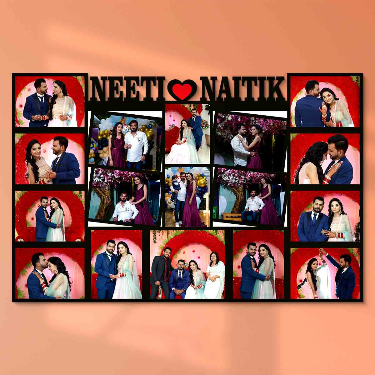 Couple 17 Photos Customized Frame with Name Personalized Photo Frames Collage (Size 12×18 in)