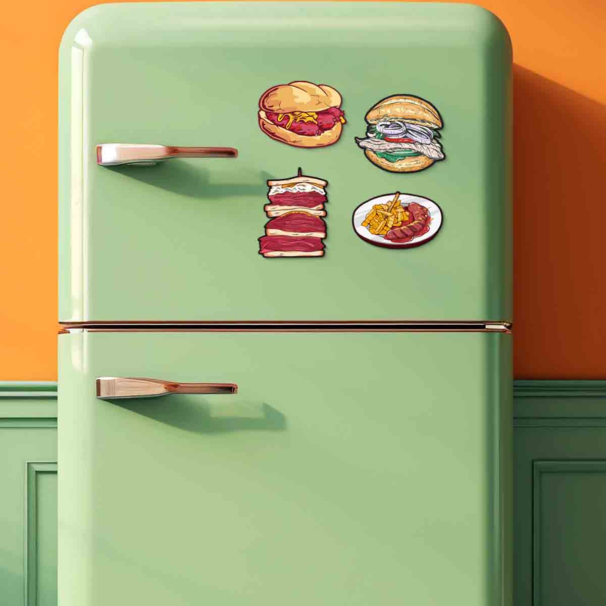 Food Themed Fridge Magnets Cartoon Magnets for Fridge (Set of 4 / Size 4×4 inch)