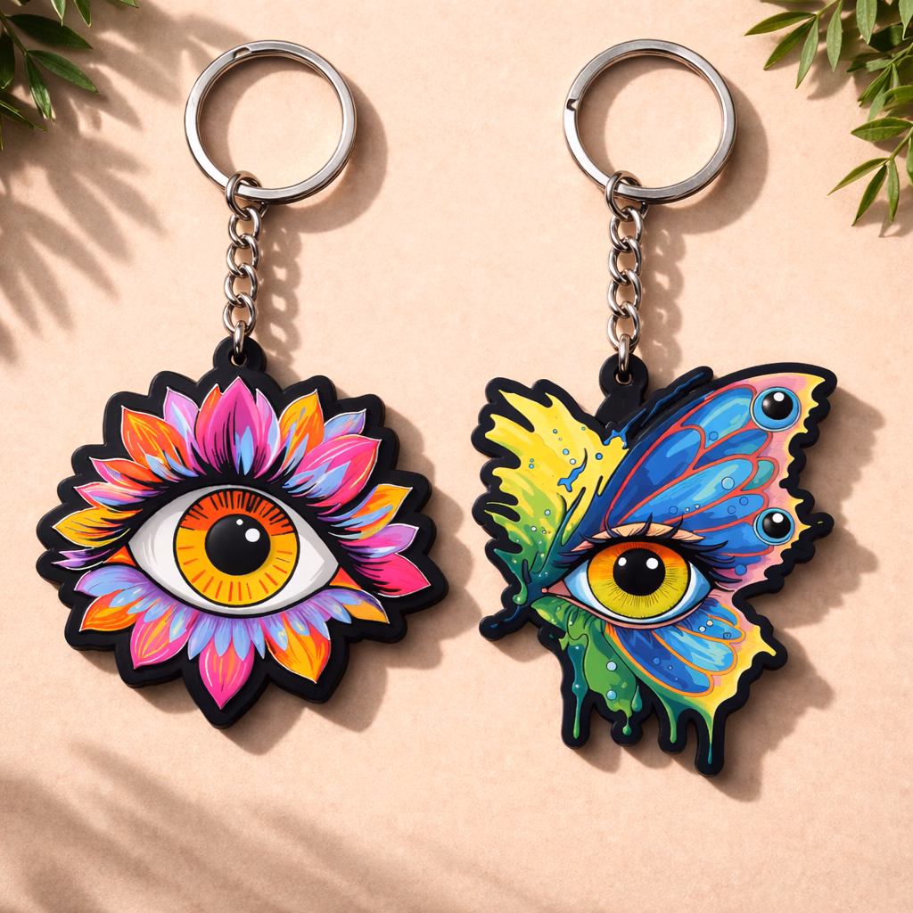 Evil Eye Butterfly Keychain Set | Artistic Aesthetic Bag Charm by Vprint Quality is designed for shoppers who want more personality in everyday accessories. This design features a bold eye-flower motif and a butterfly eye design that feel mystical, colorful and modern with strong statement appeal. If you are searching for a evil eye keychain that feels stylish, expressive and gift-ready, this product is made to deliver that exact balance. Whether you attach it to home keys, office keys, backpacks, handbags, pouches, travel organizers or zipper pulls, this keychain adds visible character in a compact form. The artwork feels instantly noticeable without becoming bulky, which makes it ideal for people who love accessories that say something about their mood, taste or lifestyle.