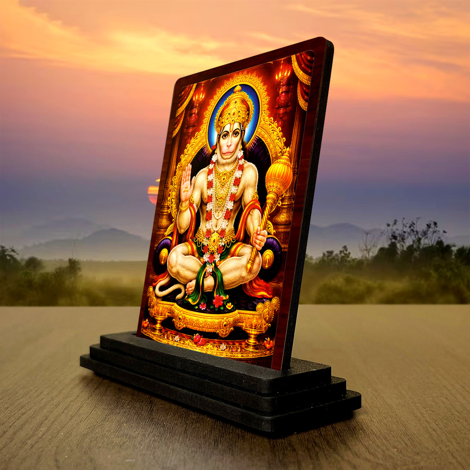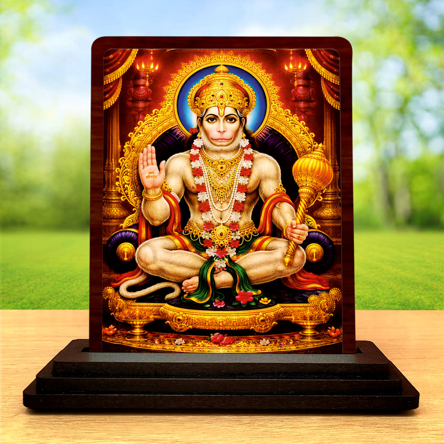 Hanuman Royal Darshan Wooden Idol 3×4 Inch HD Printed Table Decor for Home Temple