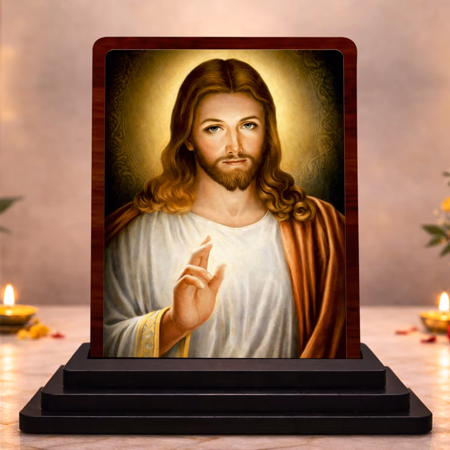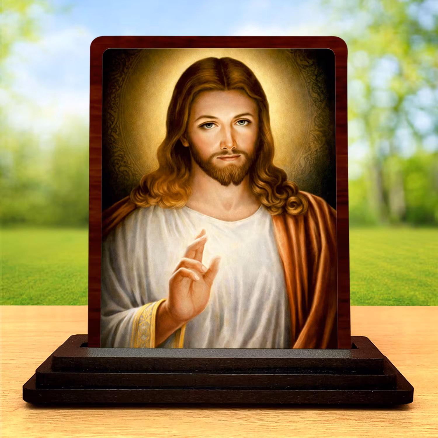 Jesus Christ Wooden Idol 3×4 Inch HD Printed Spiritual Showpiece Spiritual Art