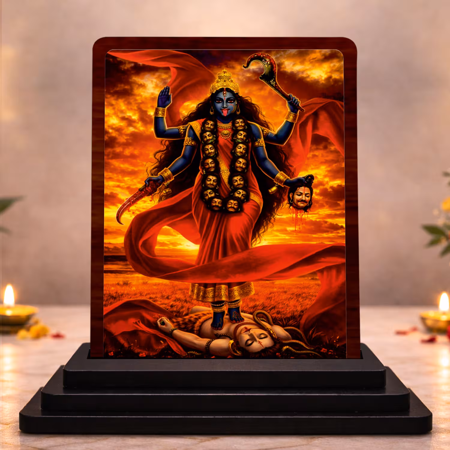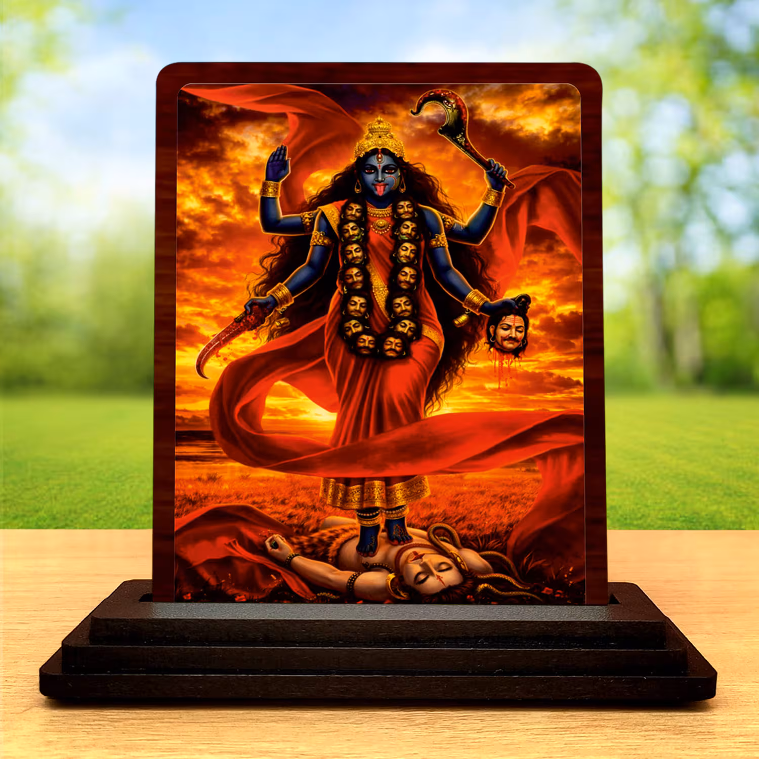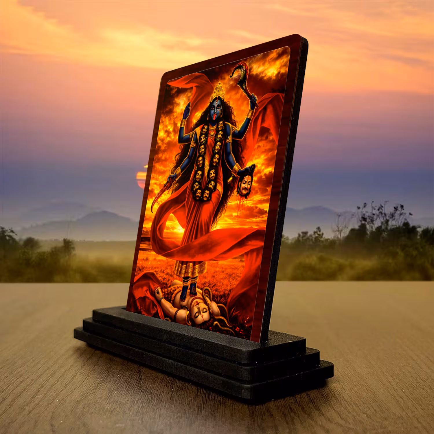 - Crisp HD printing helps this Kali Mata idol stand out with a clean finish and sacred portrait spiritual character. It carries a desk d?cor suitability.