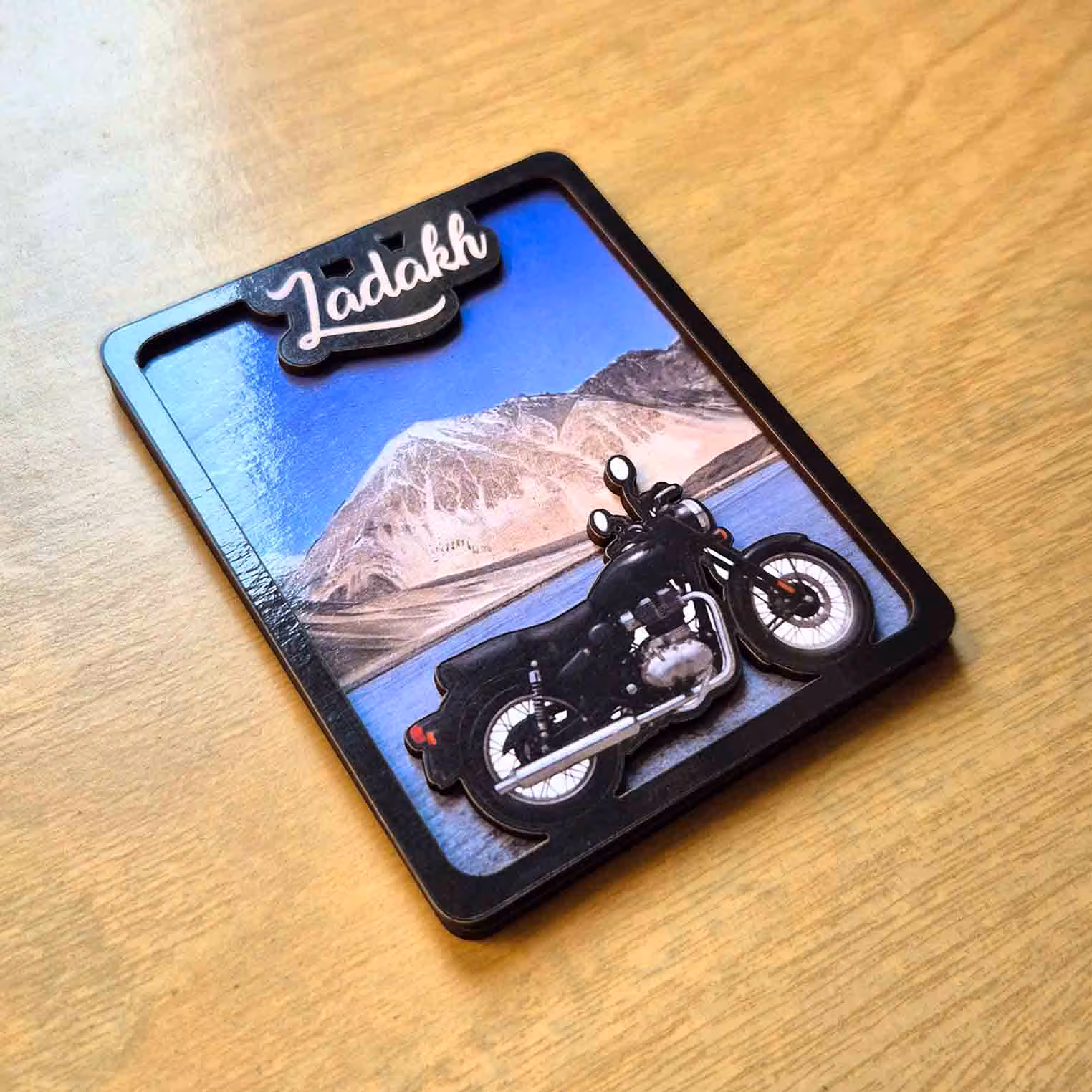 Ladakh 3D Travel Fridge Magnet is a compact and eye-catching 3D fridge magnet designed for people who love travel memories, destination-themed d?cor, and collectible souvenirs. This magnet features a Ladakh mountain travel theme with motorcycle adventure artwork, making it a stylish choice for refrigerators, almirahs, office boards, lockers, metal cabinets, caf?s, and gift hampers. With an approximate size of 3.5 x 3.5 inch, a sturdy build, and a strong magnetic back, it works both as a decorative accent and as a practical everyday magnet.