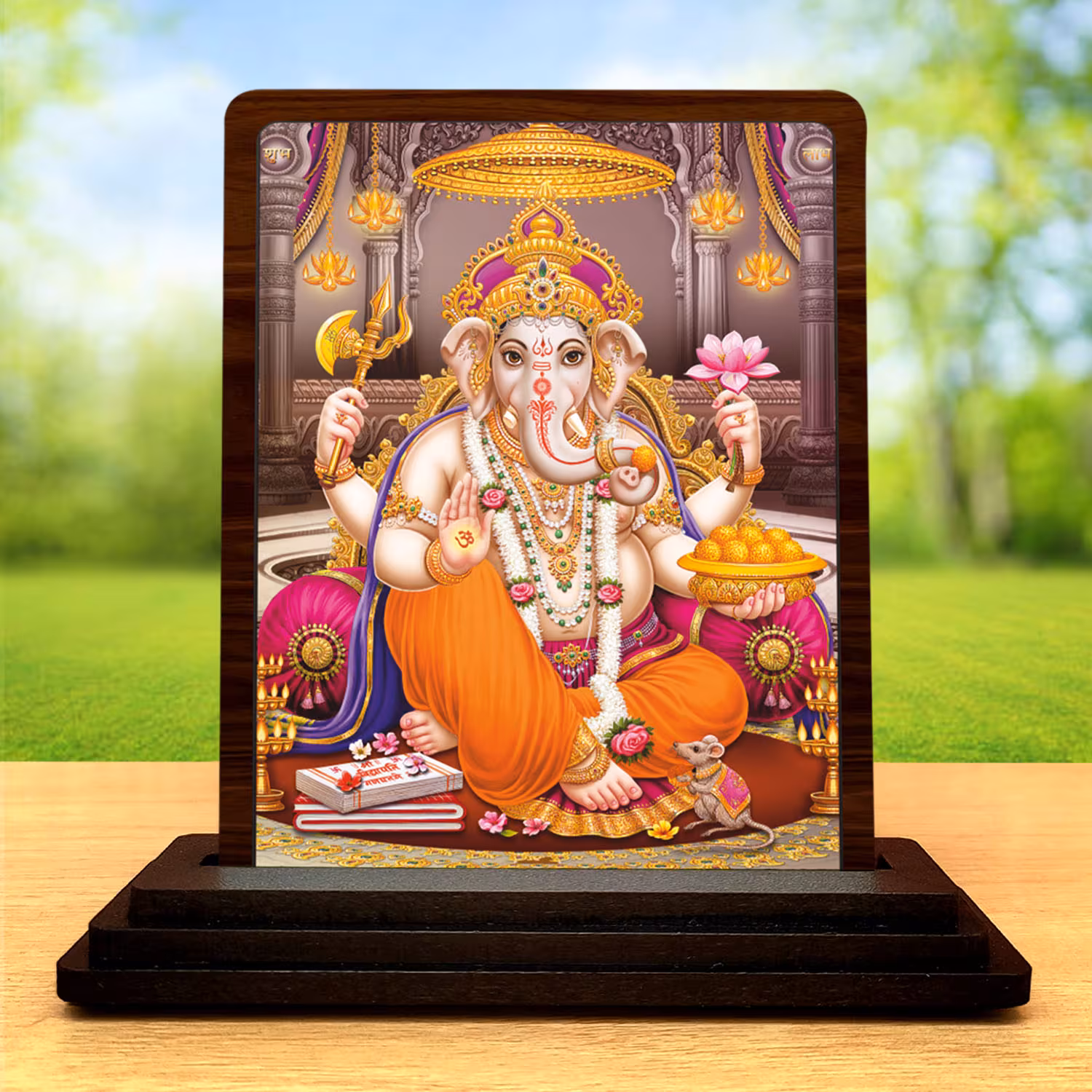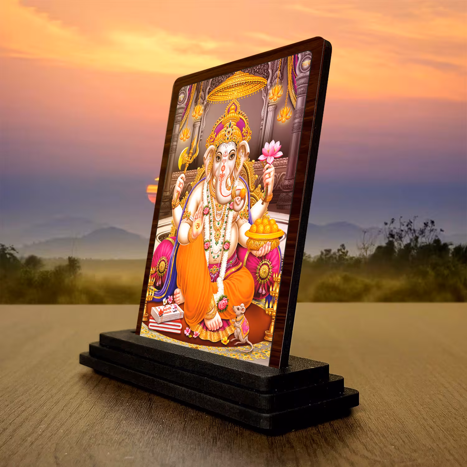 - The high-definition print captures the Lord Ganesha artwork with clear details, rich color balance, and a spiritual art look. It carries a compact display appeal.
