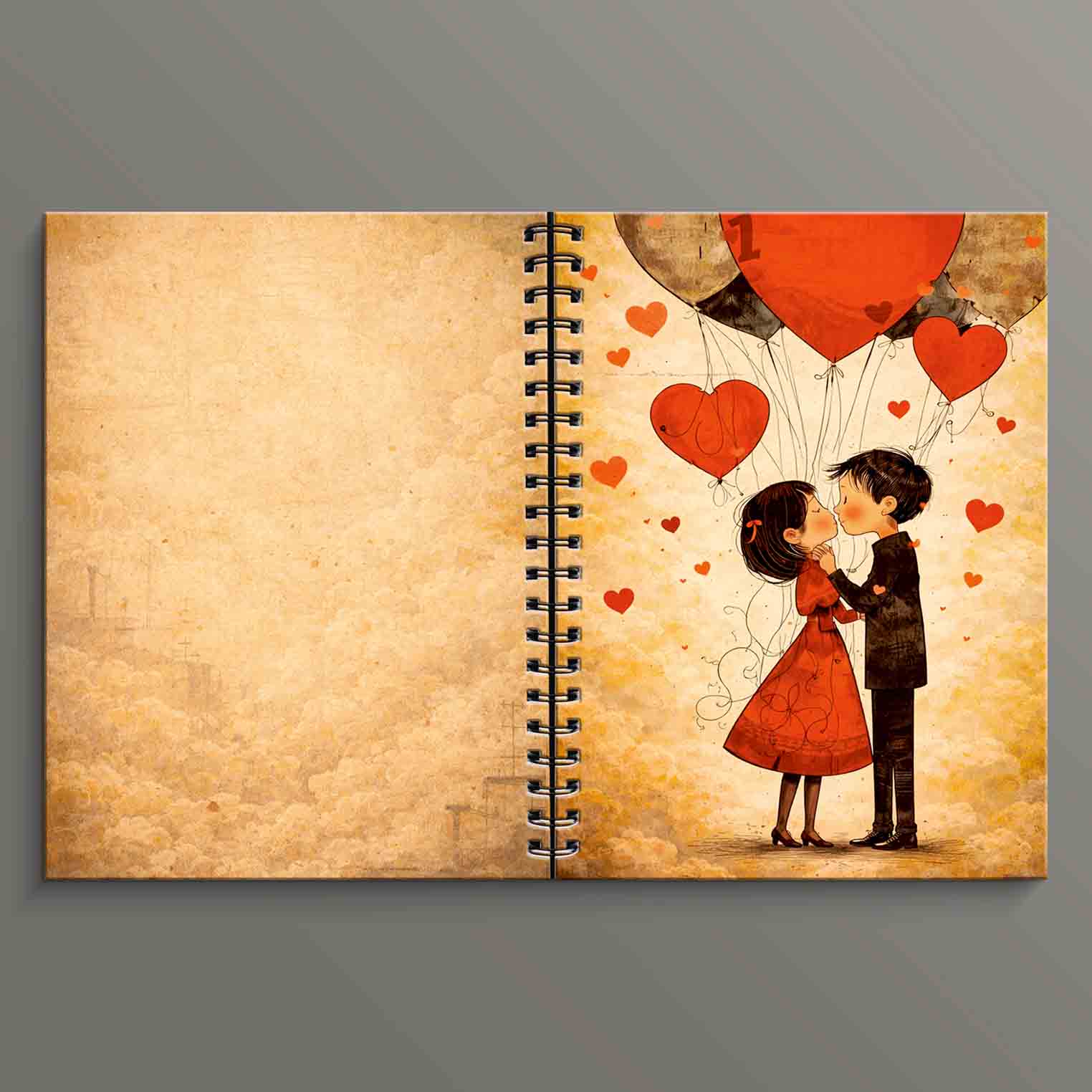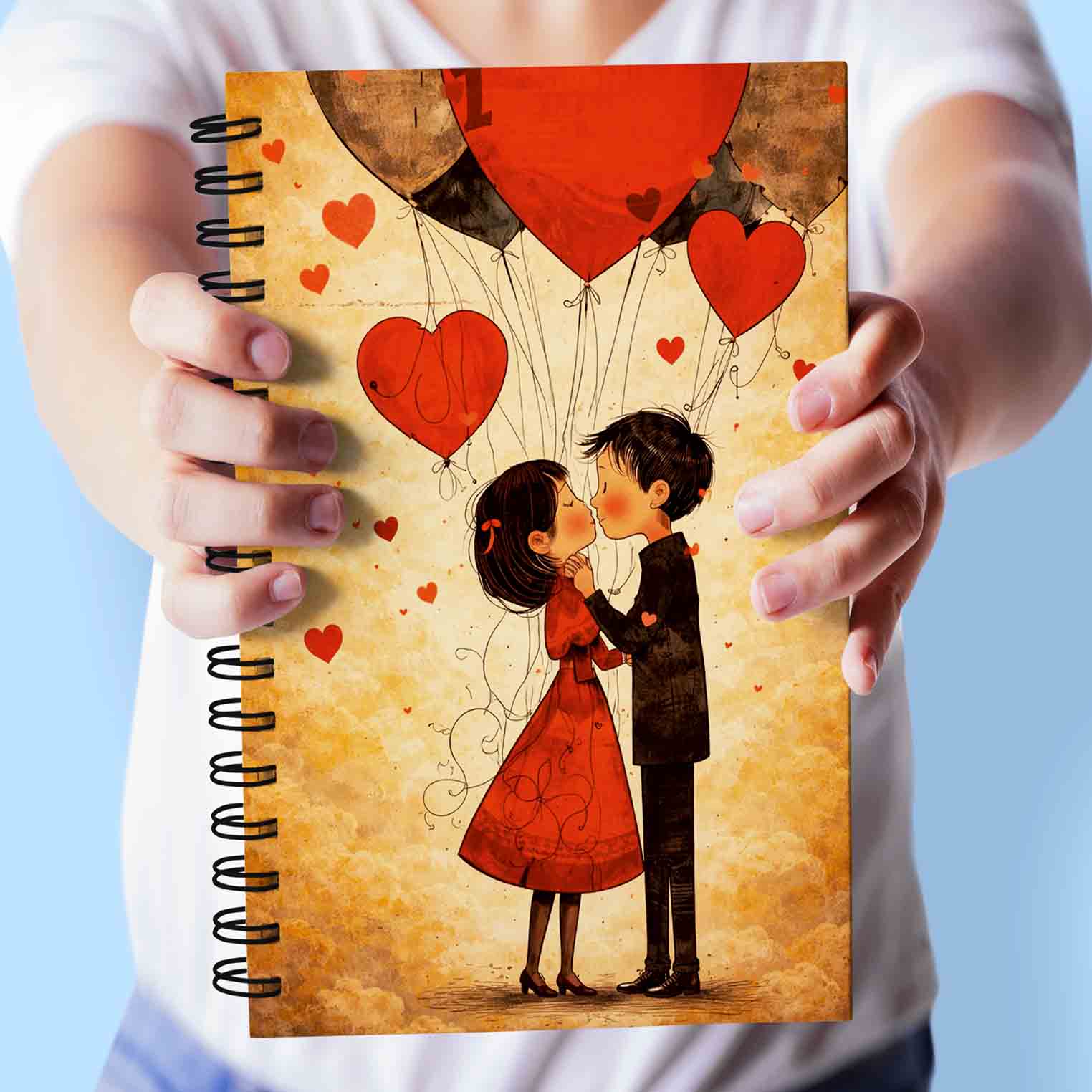 Love Balloons Spiral Notebook is a stylish spiral notebook designed for people who enjoy expressive covers, themed stationery, and gift-worthy diary designs. This notebook features a romantic couple illustration with heart balloons, making it suitable for everyday note-taking, journaling, planning, list-making, doodling, gifting, study use, work use, and personal writing. A good cover design adds personality to a notebook, and this piece is created for buyers who want something more inspiring than a plain stationery item.