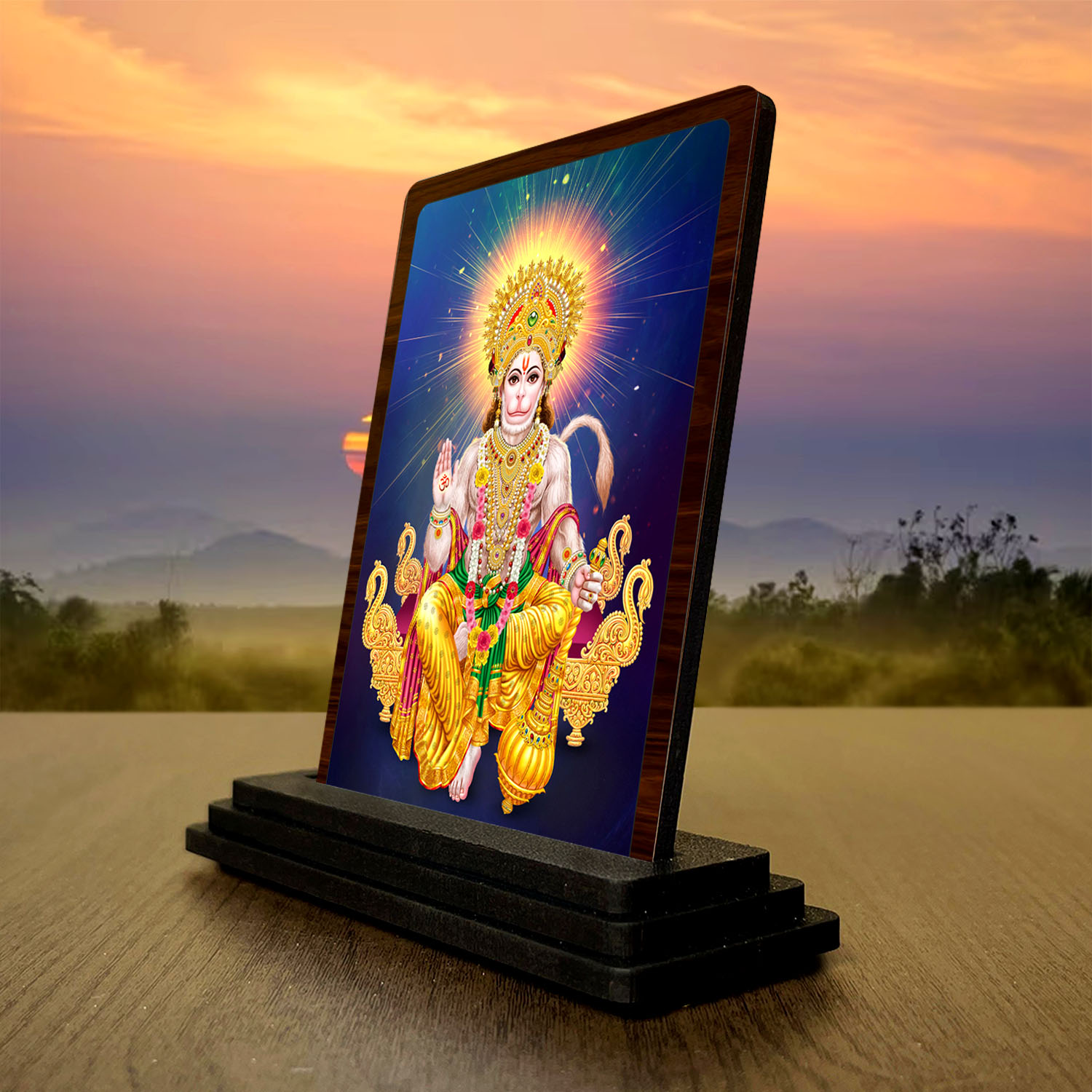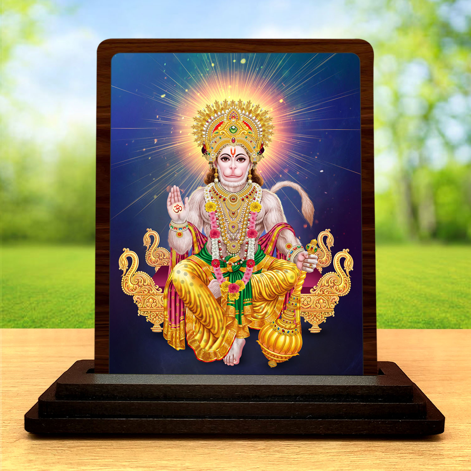 • Its small size keeps placement easy, while the wooden body and HD print add a calm classic devotional finish to the setup. The overall look reflects classic portrait detailing.
