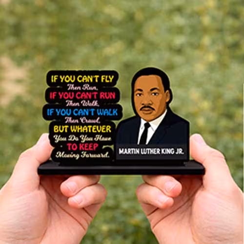 Martin Luther King Jr. Motivational Tabletop Statue is a compact and inspiring d?cor piece created for people who want their desk, shelf, study table, or workspace to reflect ambition, clarity, and positive thinking. The design highlights the famous quote ?If You Can’t Fly Then Run, If You Can’t Run Then Walk, If You Can’t Walk Then Crawl, But Whatever You Do You Have To Keep Moving Forward?, turning a simple tabletop statue into a daily visual reminder of discipline, growth, creativity, courage, and purpose. Because this piece comes in an easy-to-place 10cm x 7.5cm x 2cm format, it fits naturally into modern homes, office desks, reception counters, study corners, libraries, coaching rooms, classrooms, creative studios, and gift hampers without taking up much space.