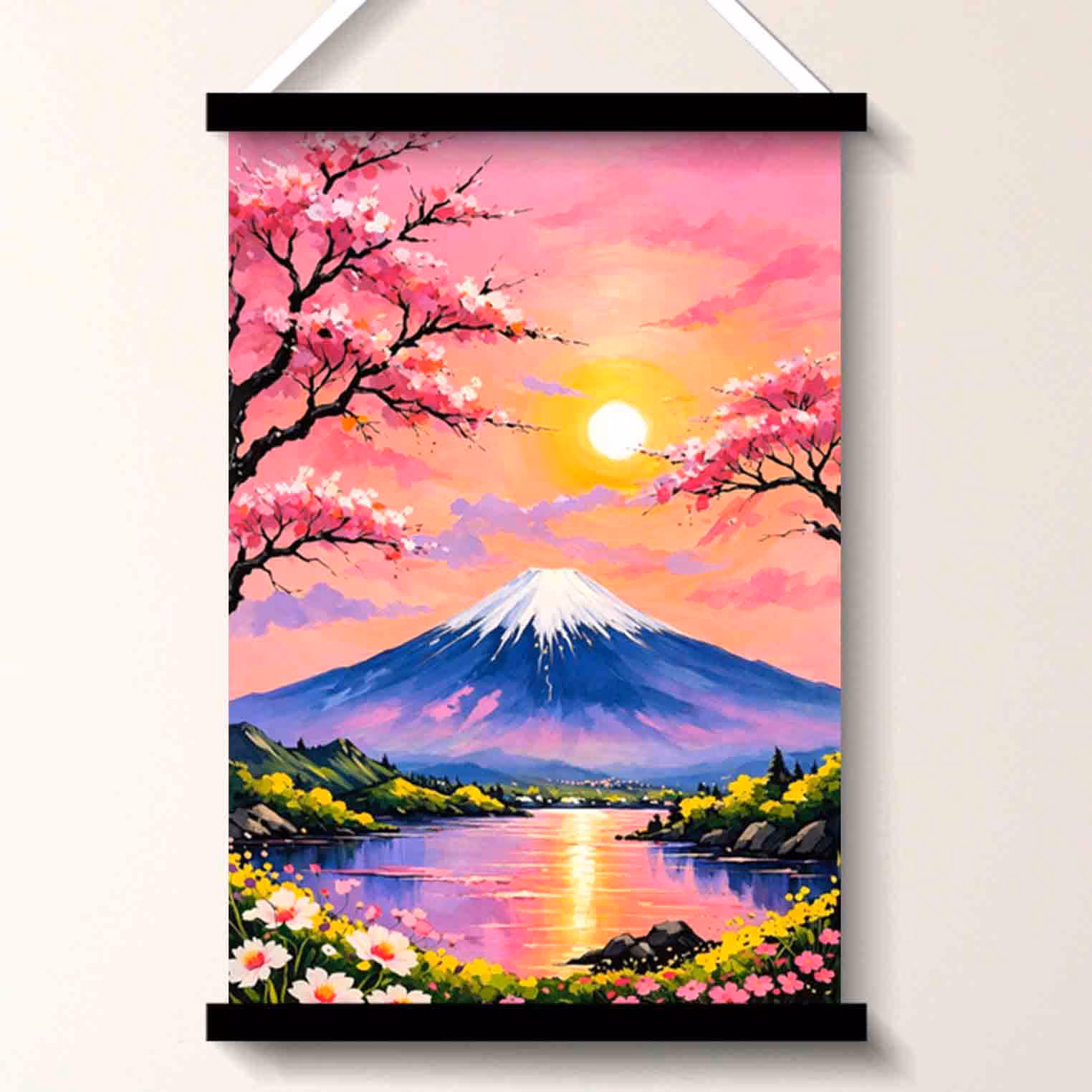 Mount Fuji Cherry Blossom Wall Art Painting is a decorative wall art piece designed to bring color, mood, and visual depth to your space. This design features a scenic mountain lake view with cherry blossoms and sunset tones, making it suitable for homes, bedrooms, living rooms, offices, caf?s, hallways, entryways, and gifting. Artwork-led wall d?cor helps instantly uplift an empty wall and adds personality without major interior changes.