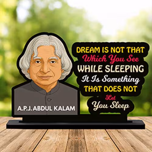 A.P.J. Abdul Kalam Motivational Tabletop Statue is a compact and inspiring d?cor piece created for people who want their desk, shelf, study table, or workspace to reflect ambition, clarity, and positive thinking. The design highlights the famous quote ?Dream Is Not That Which You See While Sleeping, It Is Something That Does Not Let You Sleep?, turning a simple tabletop statue into a daily visual reminder of discipline, growth, creativity, courage, and purpose. Because this piece comes in an easy-to-place 10cm x 7.5cm x 2cm format, it fits naturally into modern homes, office desks, reception counters, study corners, libraries, coaching rooms, classrooms, creative studios, and gift hampers without taking up much space.