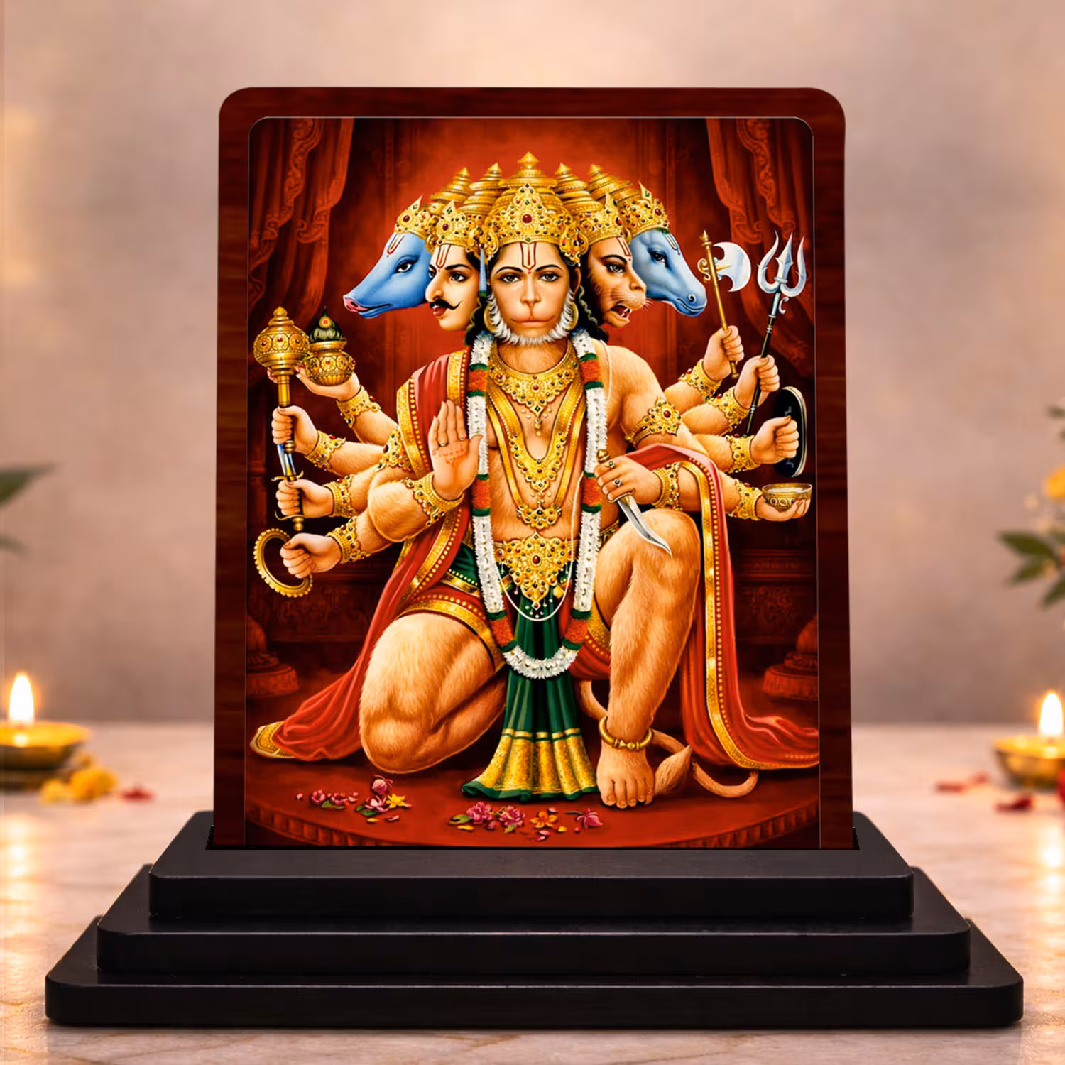 9 reviews for Panchmukhi Hanuman Wooden Idol 3×4 Inch HD Printed for Pooja Room Serene Meditation
