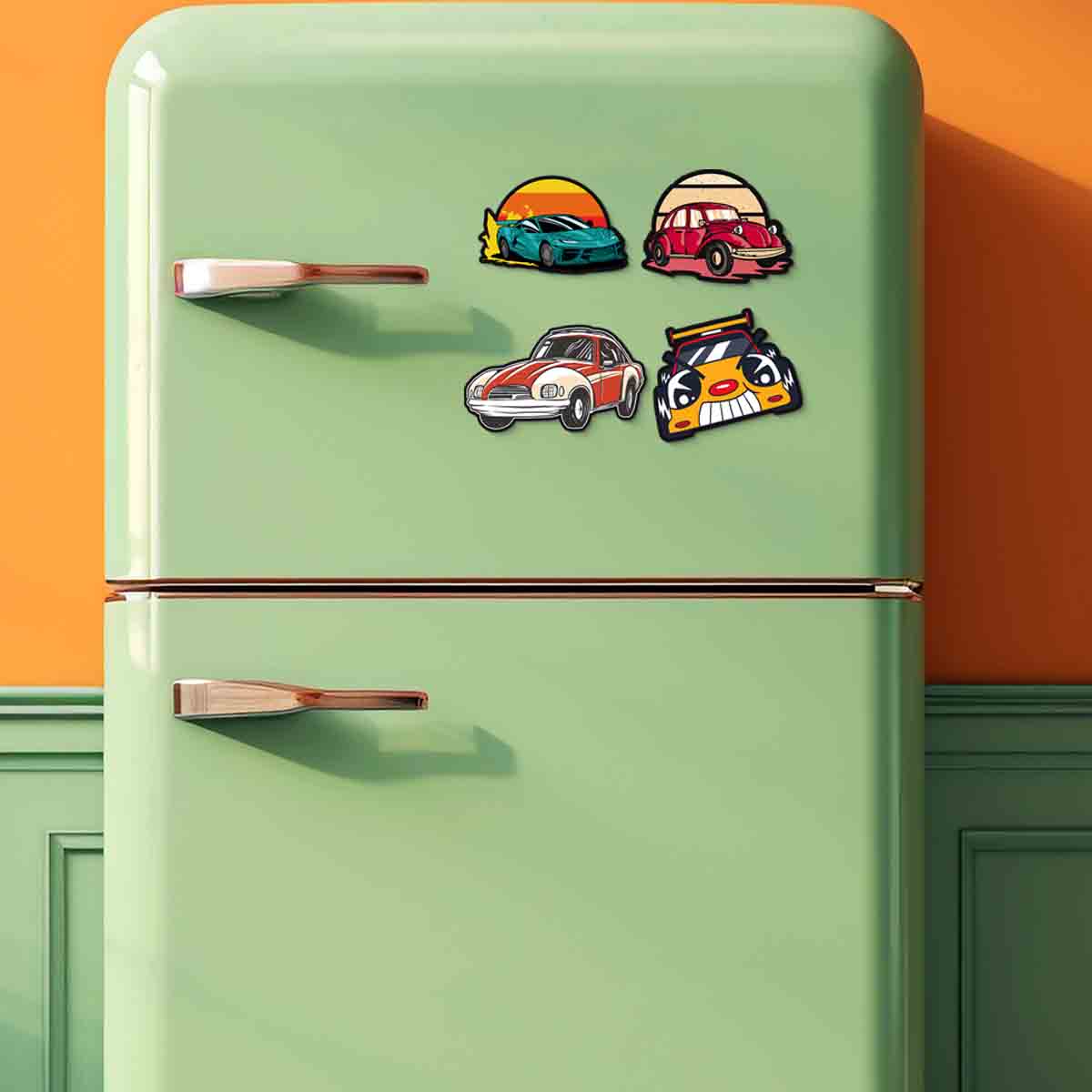 Cars Themed Kithcen Ornaments Magnets for Refrigerator Stylish (Set of 4 / Size 4×4 inch)