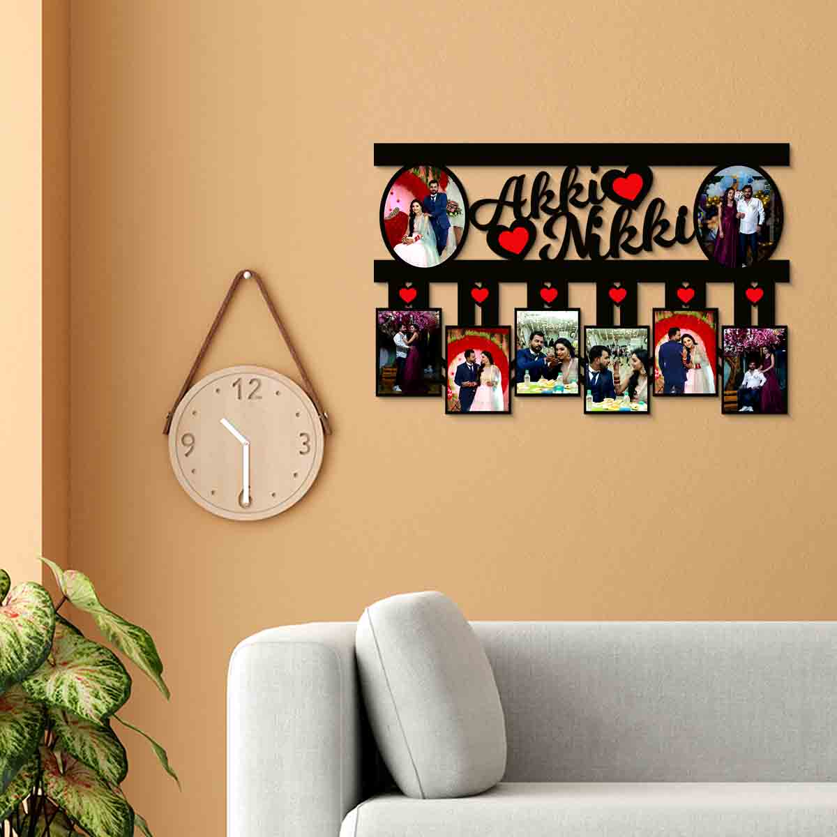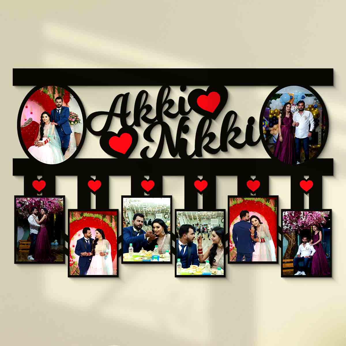 Couple 8 Photos Personalized Frame with Name Photo Frame Customised Couple (Size 12×18 in)