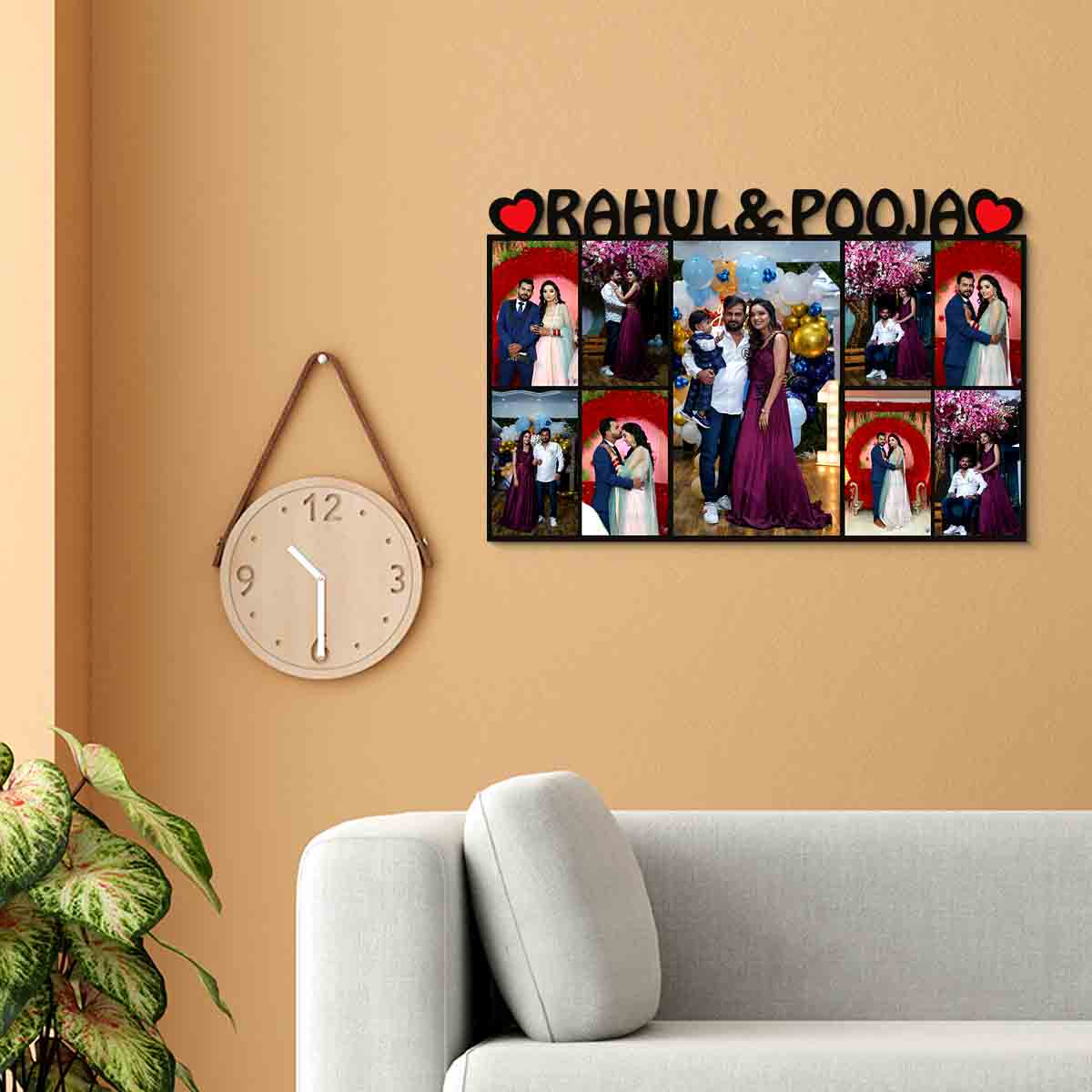 Couple 9 Photos Personalized Frame With Name Photo Frame Customised Couple (Size 12×18 in)