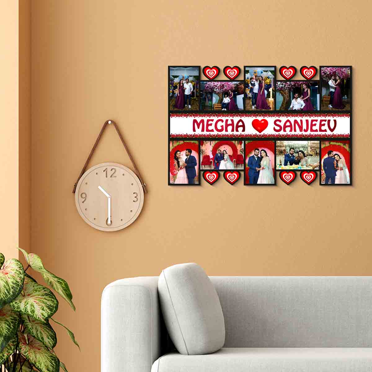 Couple 10 Photos Personalized Frame With Name Photo Frame Customised Valentine’s Day (Size 12×18 in)