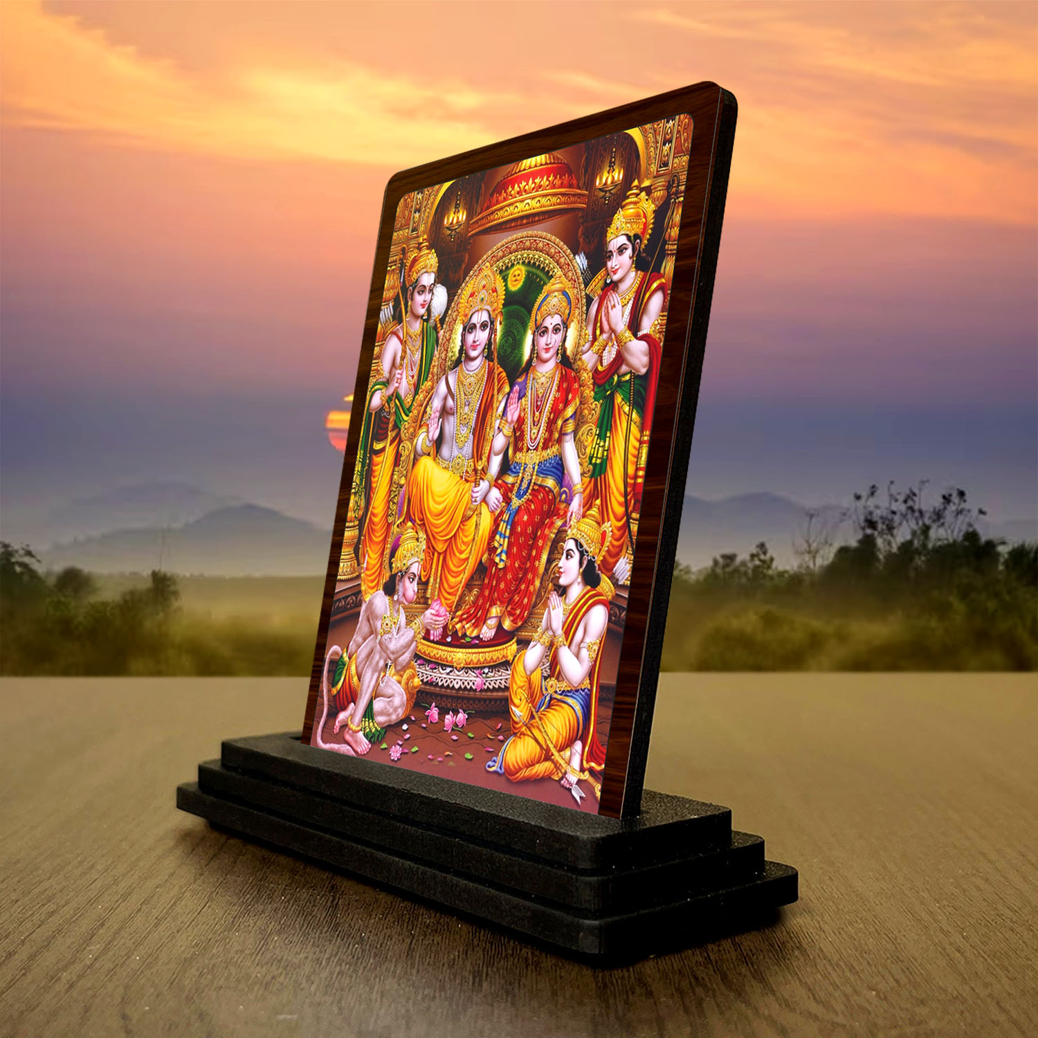 Whatever content for Ram Darbar Wooden Idol for Pooja Room 3x4 Inch HD Printed Auspicious Blessing Decor