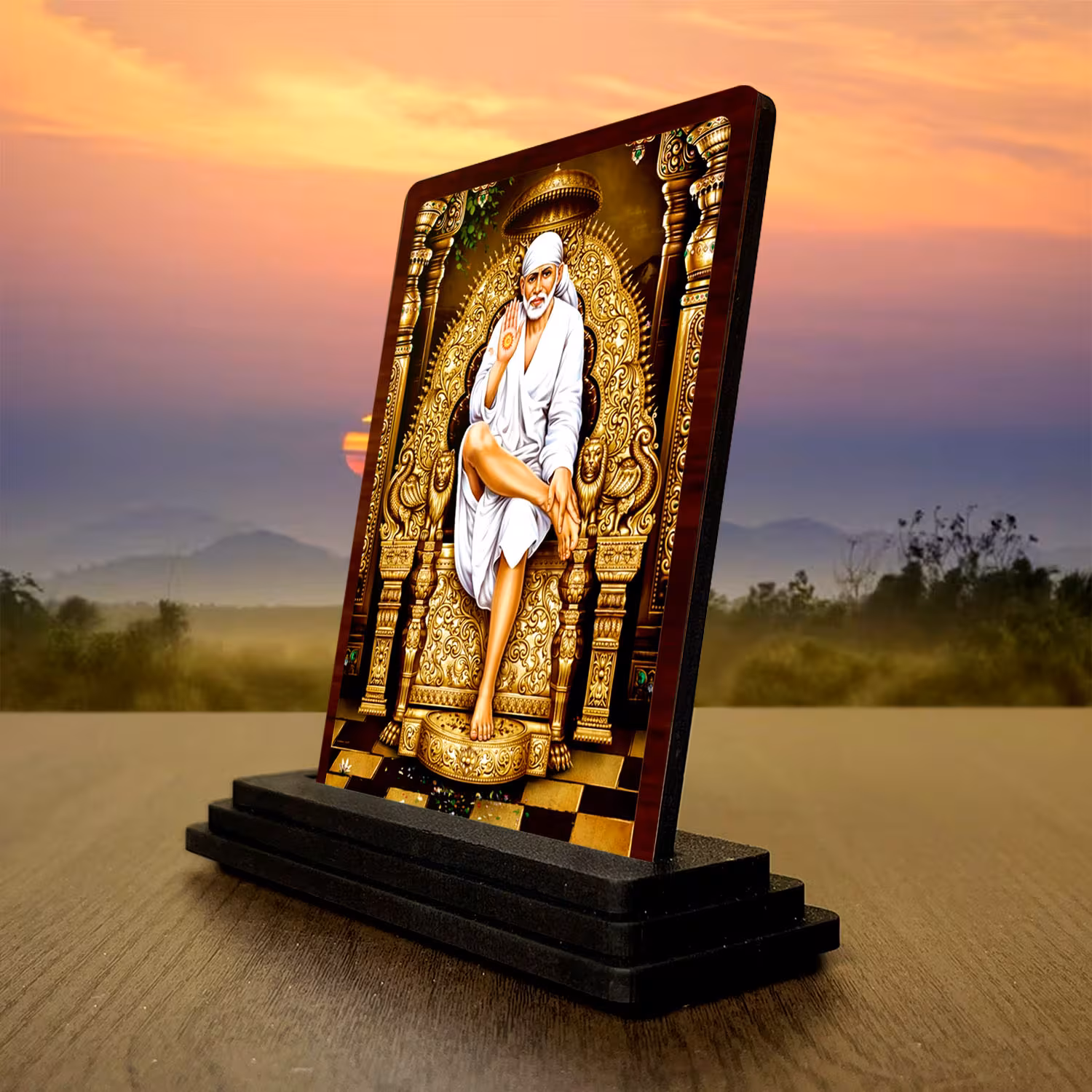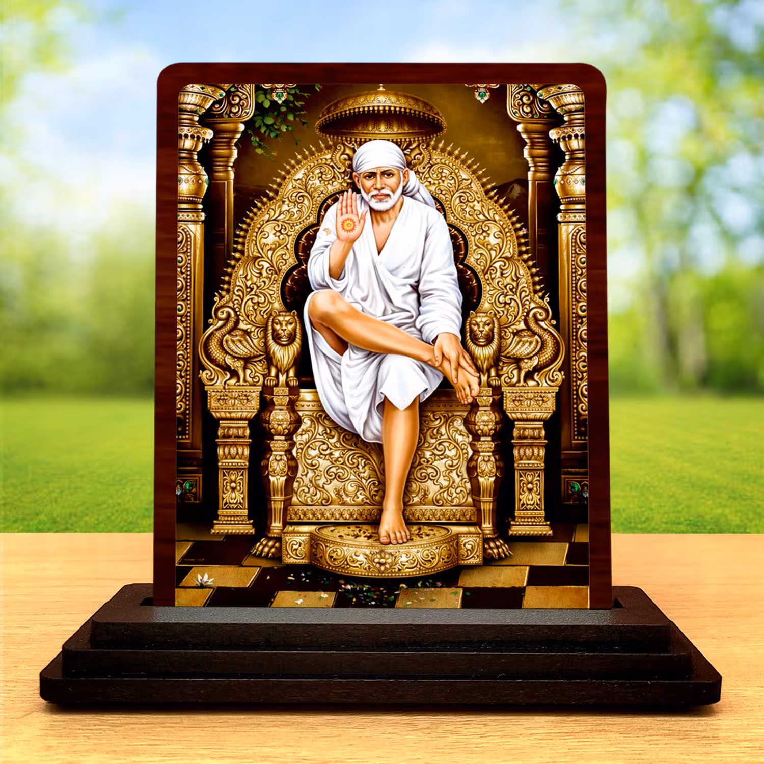Sai Baba Wooden Idol 3×4 Inch HD Printed Home Decor Calm Energy
