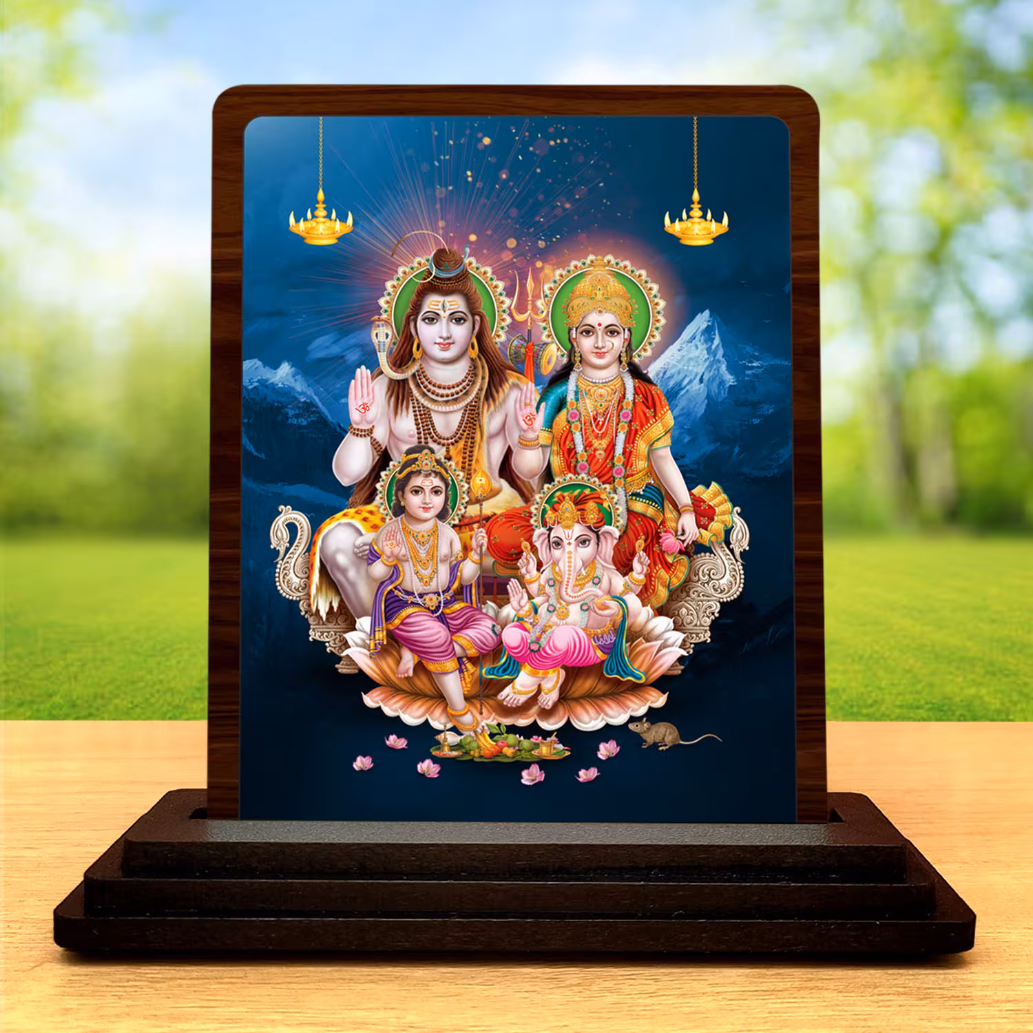 Shiv Parivar Wooden Idol 3×4 Inch HD Printed Home Decor Calm Energy