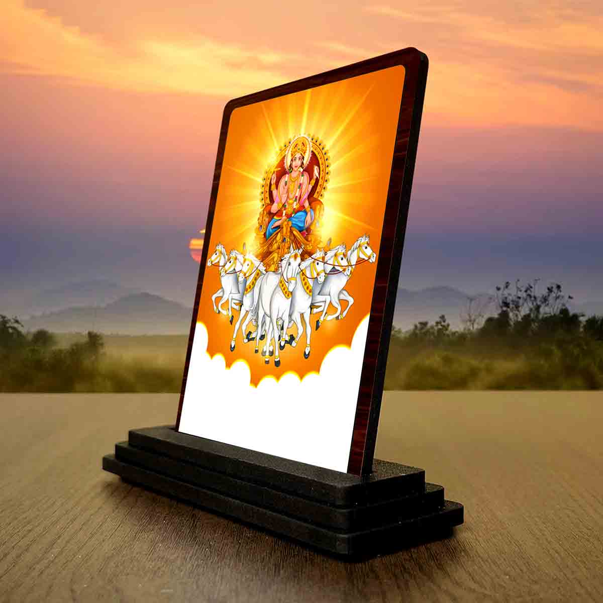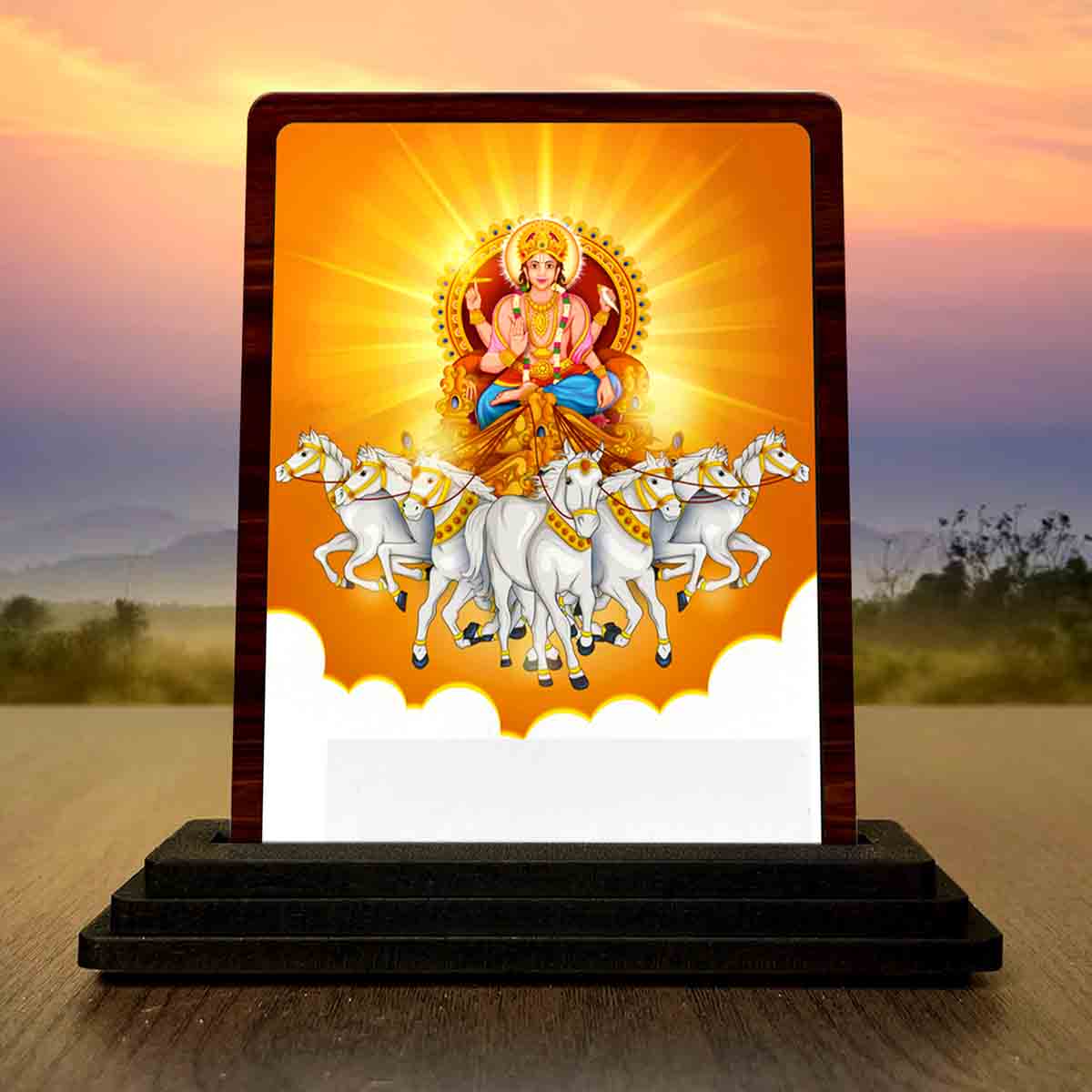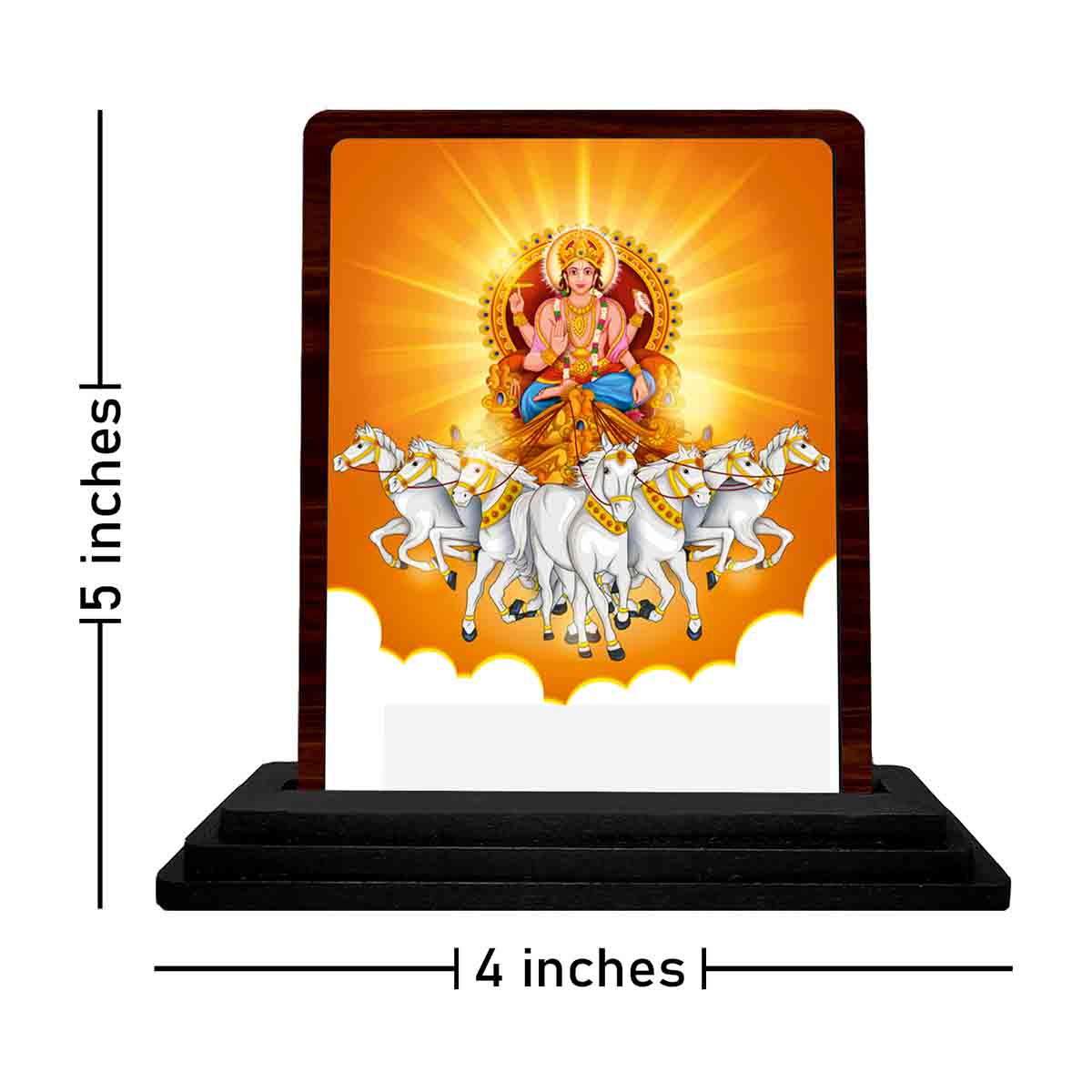 lord suryadev Introducing our exclusive Surya Dev Figurine for Home Size (4X5 Inches) meticulously crafted to add a touch of divine elegance to your sacred space. Each idol is a masterpiece in itself, carved from high-quality wood and adorned with a glossy print to capture the essence of spirituality. Here’s why our God Idols are a must-have: lord suryadev
