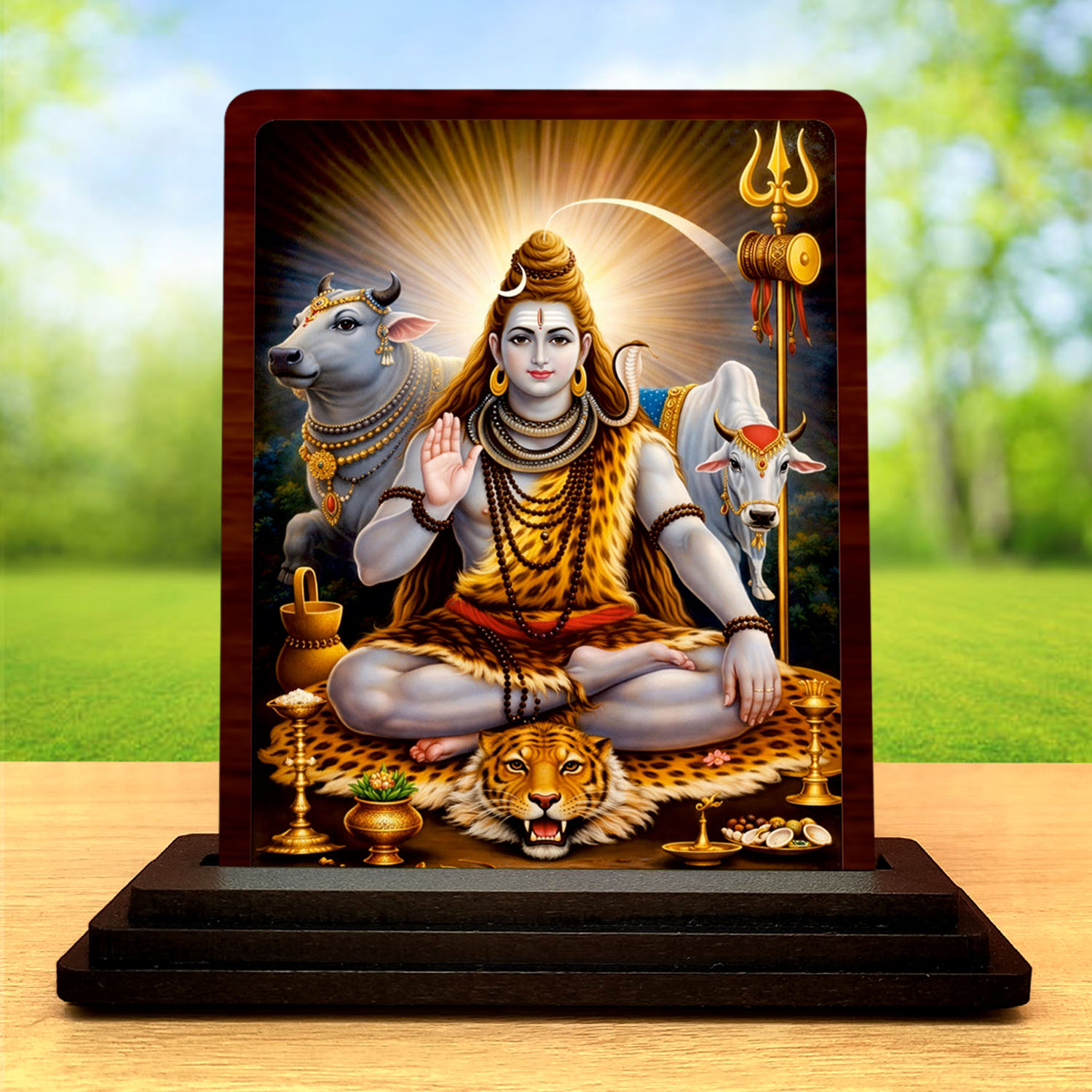 Whatever content for Temple Gift Lord Shiva Wooden Table Idol 3 x 4 Inch HD Printed Decorative Piece