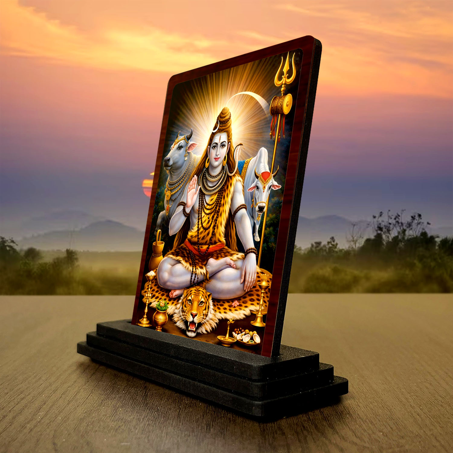 Temple Gift Lord Shiva Wooden Table Idol 3 x 4 Inch HD Printed Decorative Piece