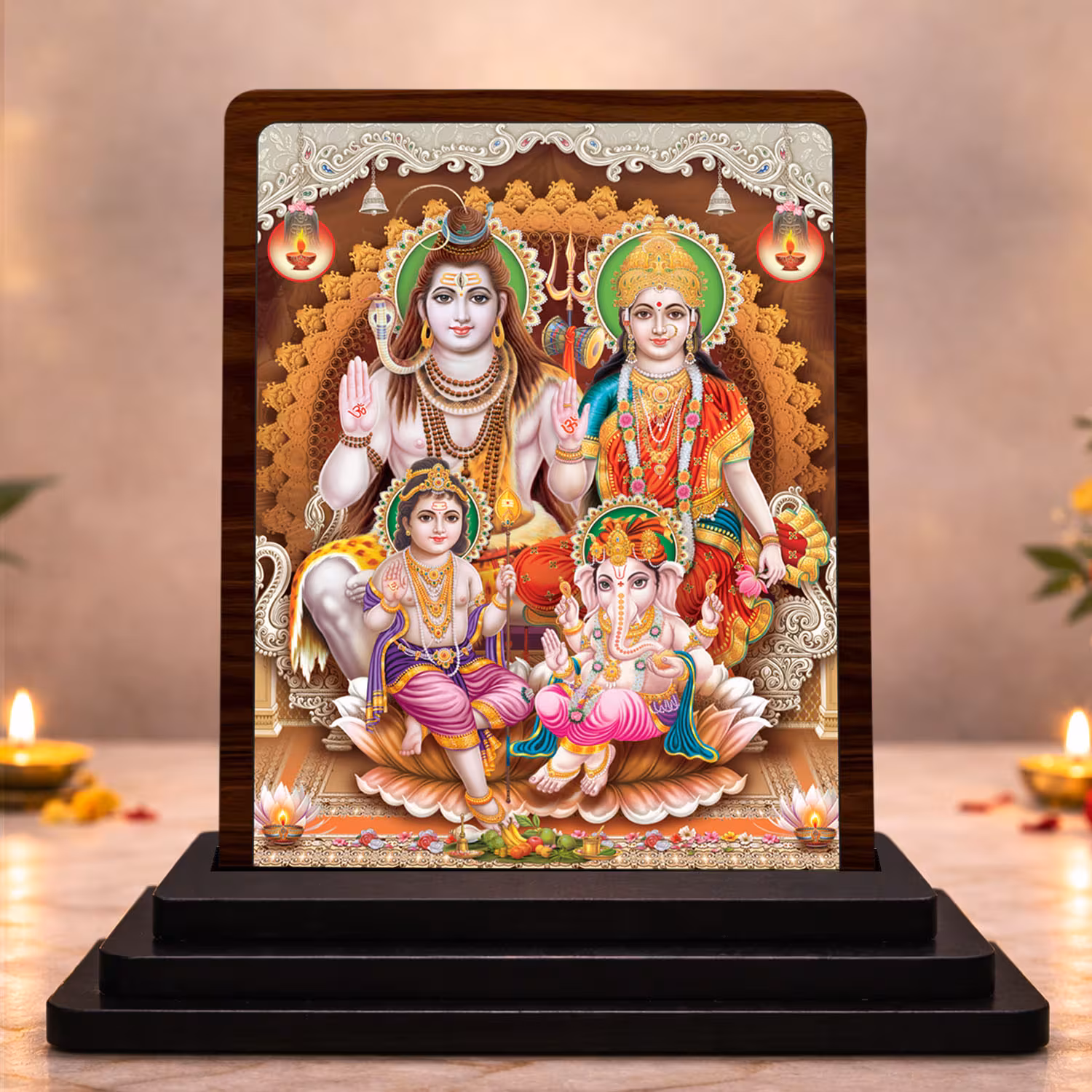 - Crisp HD printing helps this Shiv Parivar idol stand out with a clean finish and timeless prayer spiritual character. It carries a compact display appeal.