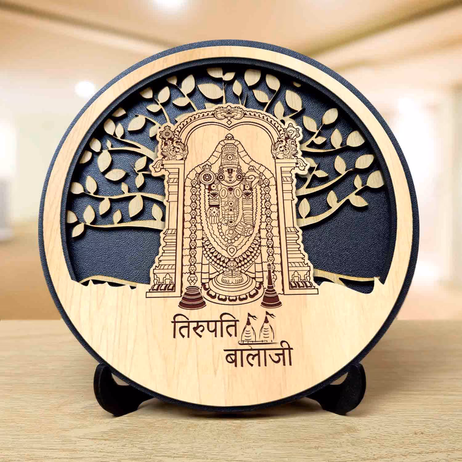 Tirupati Balaji Round Engraved Idol is a beautifully crafted wooden engraved idol designed for devotional d?cor, gifting, and elegant tabletop display. This 6 x 6 inch engraved idol adds a spiritual touch to your home temple, office desk, living room shelf, or festive d?cor setup. The round design, detailed engraving, and compact format make it suitable for daily worship as well as decorative placement.