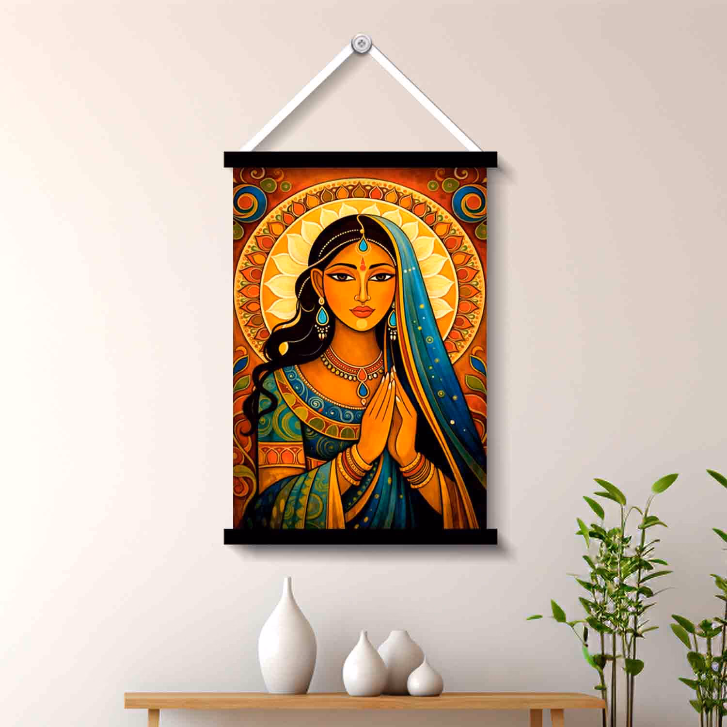 The Traditional Indian Woman wall art hanging from Vprint Quality is designed for customers who want everyday walls to feel expressive, cultured, and visually complete. Featuring a regal Indian woman portrait with ornate ethnic styling, this design creates an immediate focal point without making the room feel crowded. The artwork carries the richness of ethnic portrait art and translates it into a d?cor accent that feels both eye-catching and easy to style. Whether you are refreshing your family space, setting up a warm corner for guests, or upgrading a plain wall that needs more personality, this piece helps you introduce color, story, and balance in a practical way. If you are searching for ethnic wall art for home that looks artistic, versatile, and gift-worthy, this design offers a beautiful combination of visual impact, compact size, and d?cor flexibility for modern homes.