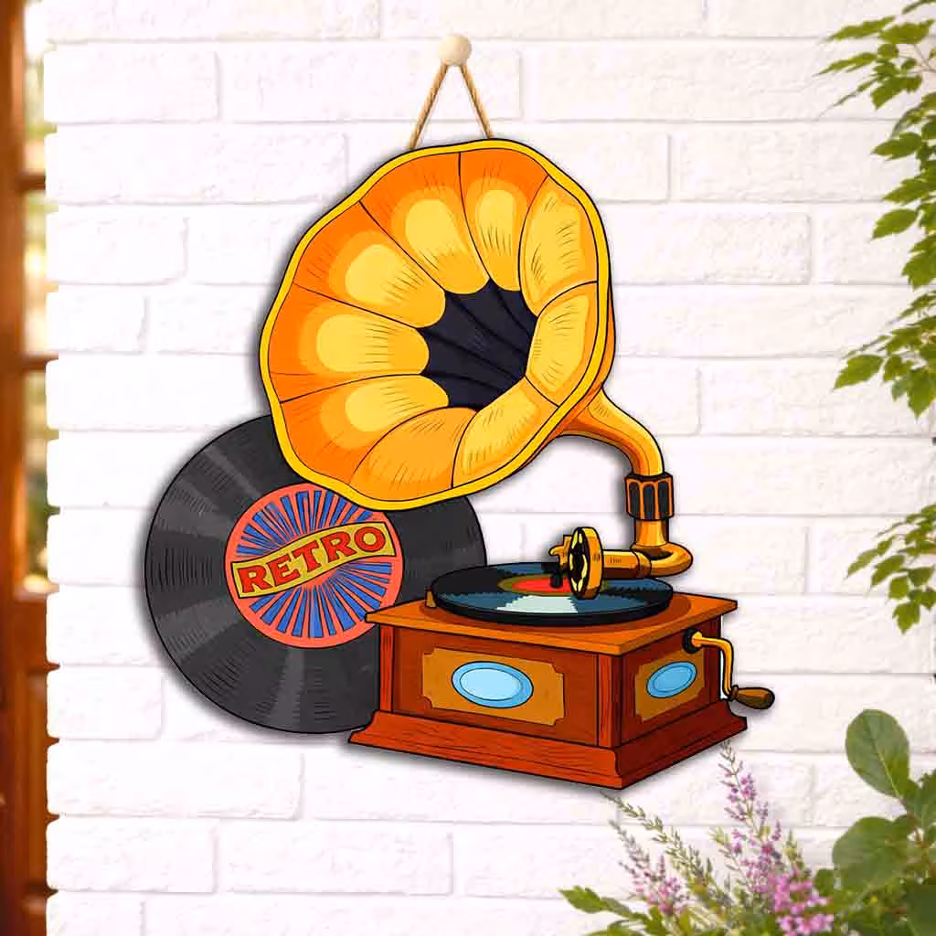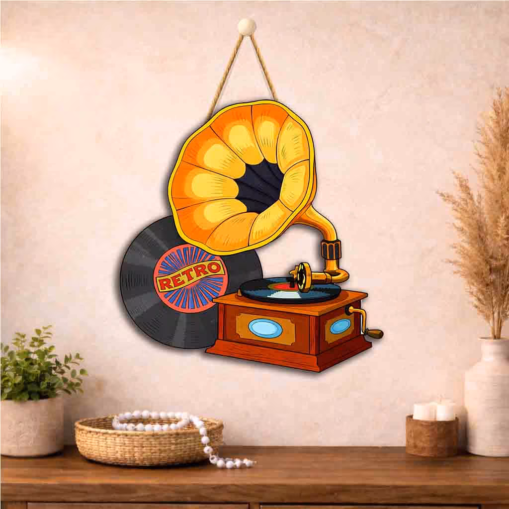 Vintage Gramophone Wooden Wall Hanging is a premium gramophone wall hanging created for people who want their walls to feel lively, expressive and memorable. This design brings together retro music decor with golden yellow, brown, blue and vinyl accents, making it a strong choice for homes that need a decorative focal point without looking heavy or cluttered. If you enjoy tasteful d?cor that feels artistic yet easy to style, this wall hanging can instantly uplift a plain wall and give the room a refined identity. The compact 20 x 26 x 0.5 cm size makes it practical for daily home styling while still giving enough visual presence to draw attention.
