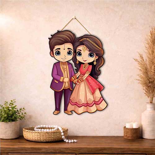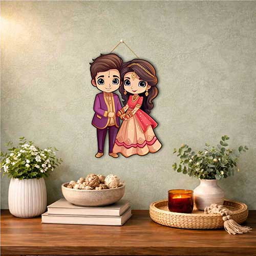Wedding Couple Wooden Hanging is a decorative wooden hanging designed to add charm, personality, and visual warmth to your walls. This design features a cute traditional wedding couple illustration for gifting and room decor, making it suitable for home d?cor, office d?cor, entryway styling, bedroom walls, kids spaces, gifting, and festive decoration. Whether the buyer prefers modern artwork, cute decorative pieces, spiritual accents, or themed wall styling, this hanging brings an easy way to refresh a plain wall without major effort.
